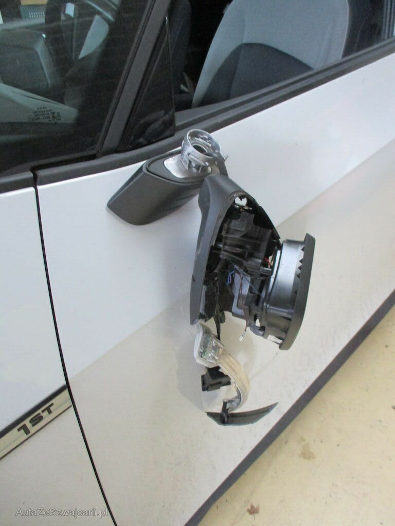 Flanc = rétro arraché, aile arrière enfoncée, pare-chocs arrière, feu, etc