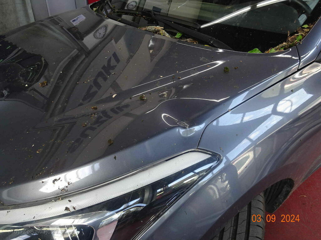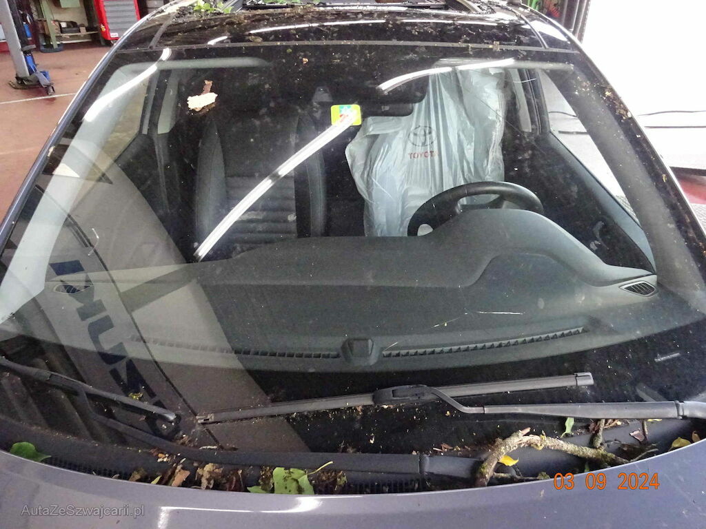 Motorhaube, Frontscheibe, Kotflügel links, Dach, Panoramaglasdach, Dachrahmen links und rechts, Heckklappe, Seitenwand rechts beschädigt. Innenraum nass