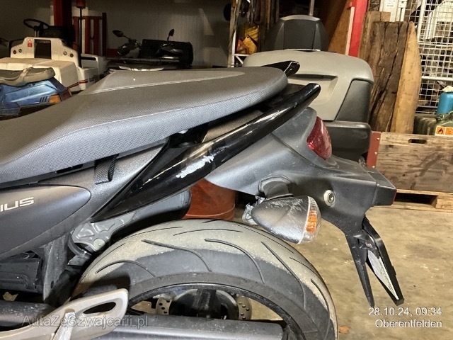| Schadensbeschreibung | Heckschaden, Seitenschaden rechts/ links: Heck eingedrückt, Schwinge, Auspuff rechts eingedrückt Sturz links, ganze linke Seite zerkratzt, Heck, Fussraster, Schalthebel, Lenker, Bremshebel, Spiegel, Schutzbügle, Gabelholm alles zerkratzt. Motor läuft, fahrbar |