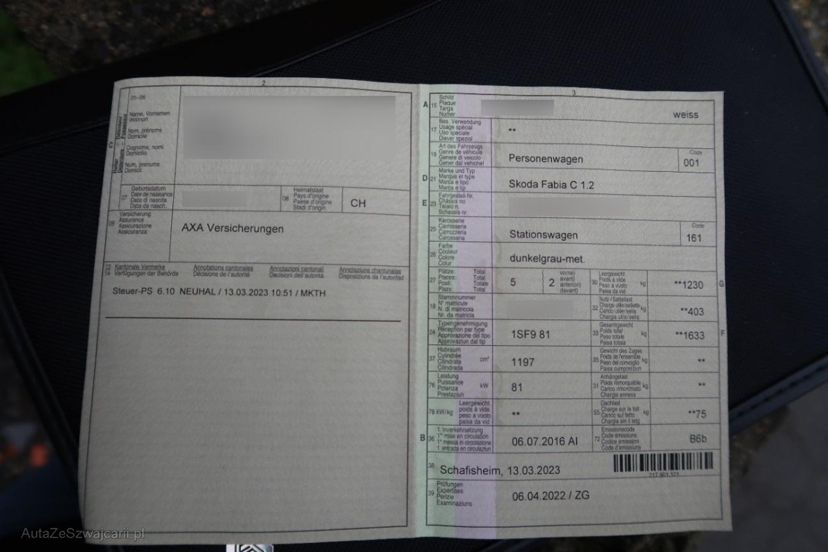 | Fahrzeugausweis | Vorhanden |