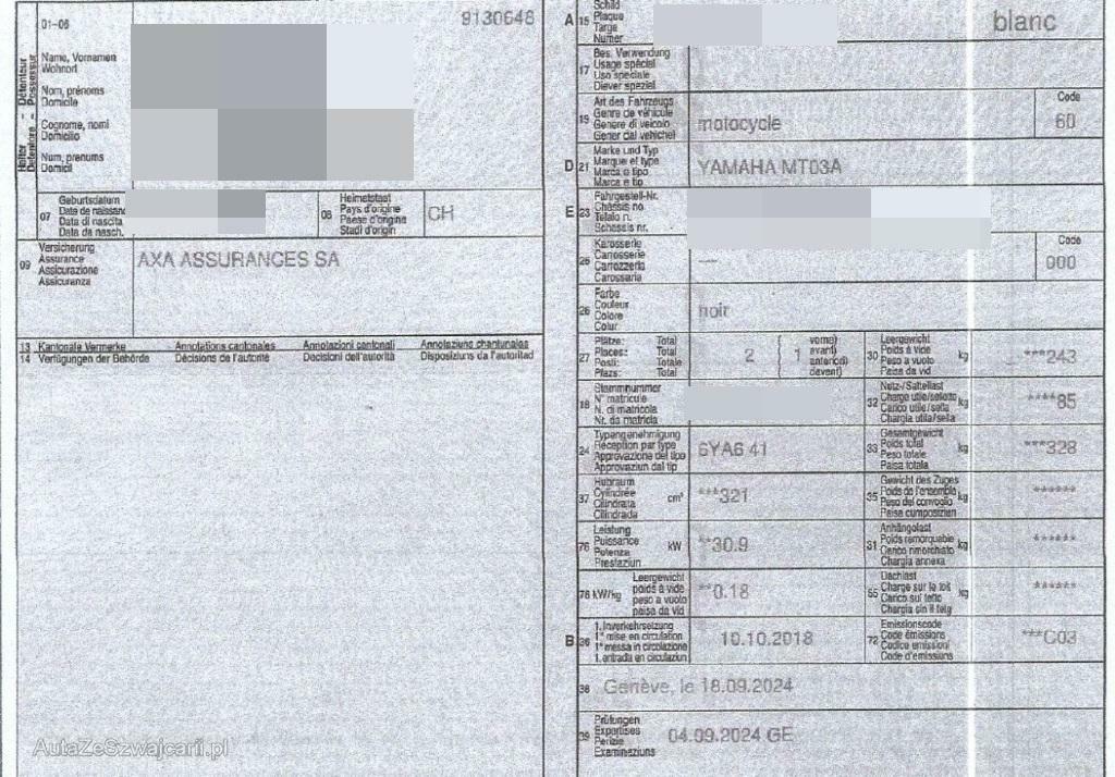 | Fahrzeugausweis | Vorhanden |
