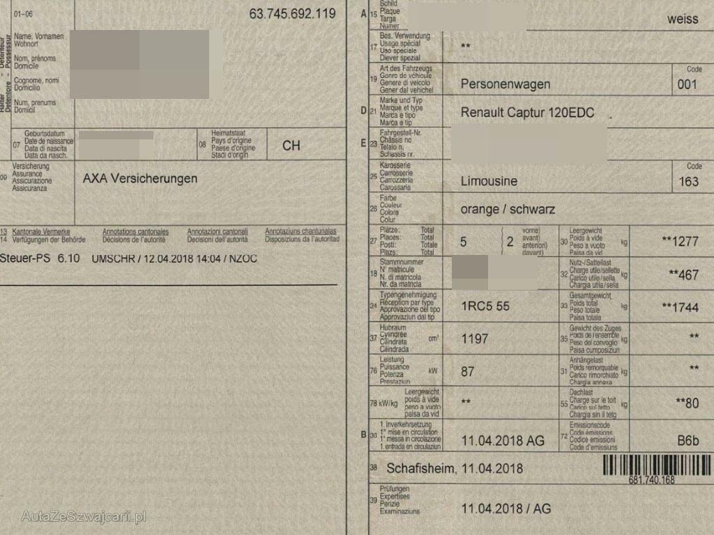 | Fahrzeugausweis | Vorhanden |