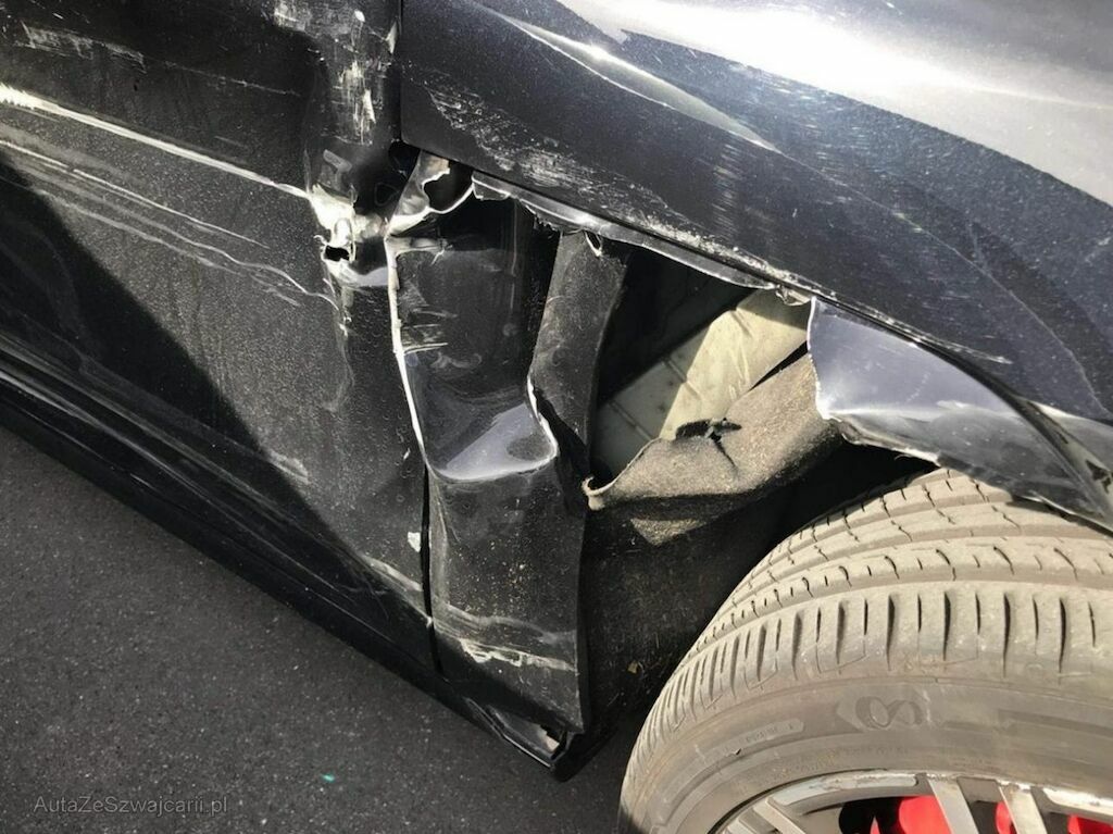 Ganze rechte Fahrzeugseite beschädigt.