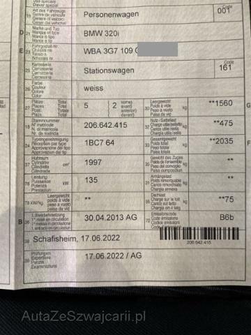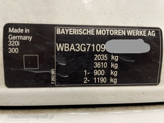 | Ausstattung | Serienaustattung Seitenairbag für Fahrer und Beifahrer Radio BMW Professional Durchladesystem Automatische Heckklappenbetätigung Gepäckraum-Trennnetz Nebelscheinwerfer vorne Dynamische Stabilitäts-Control DSC Lederlenkrad Fahrer und Beifahrer-Airbag Velours-Fussmatten Uni-Lackierung Multifunktions-Lenkrad Fensterheber elektrisch vorne + hinten Kopfairbags vorne + hinten Dynamische Traktions-Control DTC Heckscheibe aufklappbar Deaktivierung Beifahrerairbag Kindersitzbefestigung Isofix für Fondsitze ABS Antiblockiersystem inklusive Bremsassistent Radschraubensicherung Interieurleisten Satinsilber matt Auto Start Stopp Funktion Rücksitzlehne geteilt umklappbar 40/20/40 Keine Gewähr auf die Angaben der Serienausstattungen Pack Swiss-Premium Leichtmetallräder V-Speiche 390 Sonderausstattung Sport-Lederlenkrad Sitzheizung für Fahrer und Beifahrer Innenspiegel automatisch abblendbar Regensensor Xenon-Licht Servotronic Pack Ablage Navigationssystem Professional Scheinwerfer-Waschanlage Adaptives Kurvenlicht Pack Licht Sonnenschutzrollo für Seitenscheiben mechanisch Kopfstützen im Fond klappbar Head-Up Display Armauflage vorn verschiebbar Park Distance Control PDC hinten Geschwindigkeitsregelung mit Bremsfunktion Fernlichtassistent Klimaautomat 2-Zonen inkl. Mikrofilter Digital audio DAB-Tuner Erweiterte Anbindung des Music-Players im Mobiltelefon Dachreling schwarz Anbindung Bluetooth- und USB-Geräte Apps Instrumentenkombination/ erweitert BMW Live |