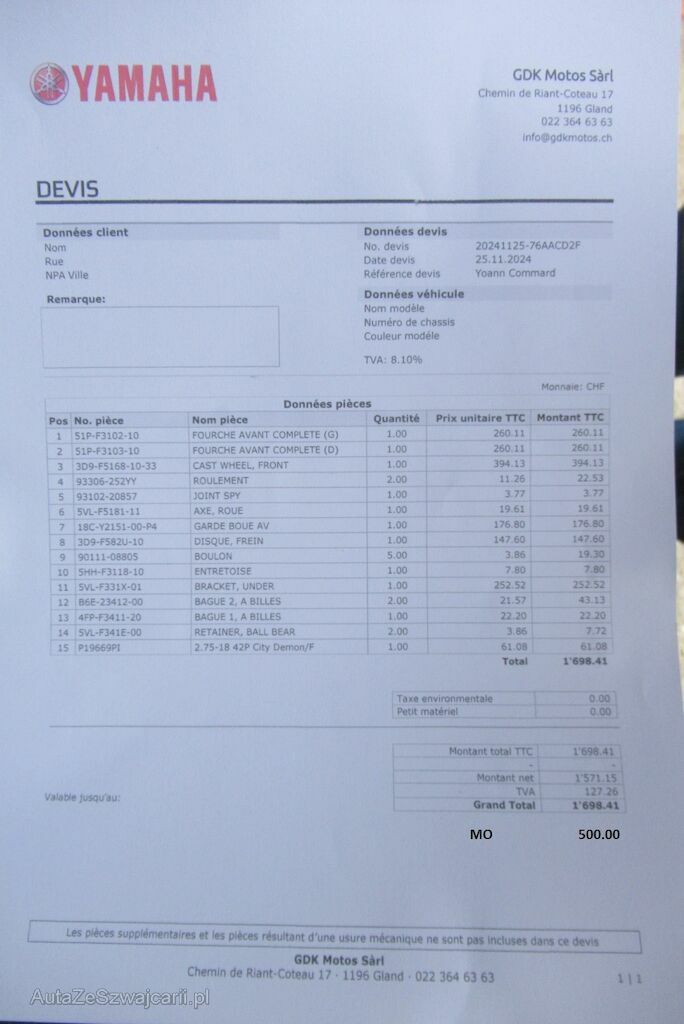 | Reparaturkosten | 2'200.00 CHF |