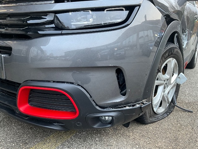| Schadensbeschreibung | Beschreibung der Schäden: Avant gauche + continuité sur flanc : Pare-chocs avant + spoiler - Aile avant gauche - demi train avant gauche + passage de roue - Porte avant gauche + faisceau électrique porte - Airbag tête gauche et droit - Airbag lat. gauche ( rideau) airbag siège - Prétensionneurs ceintures - Ciel |