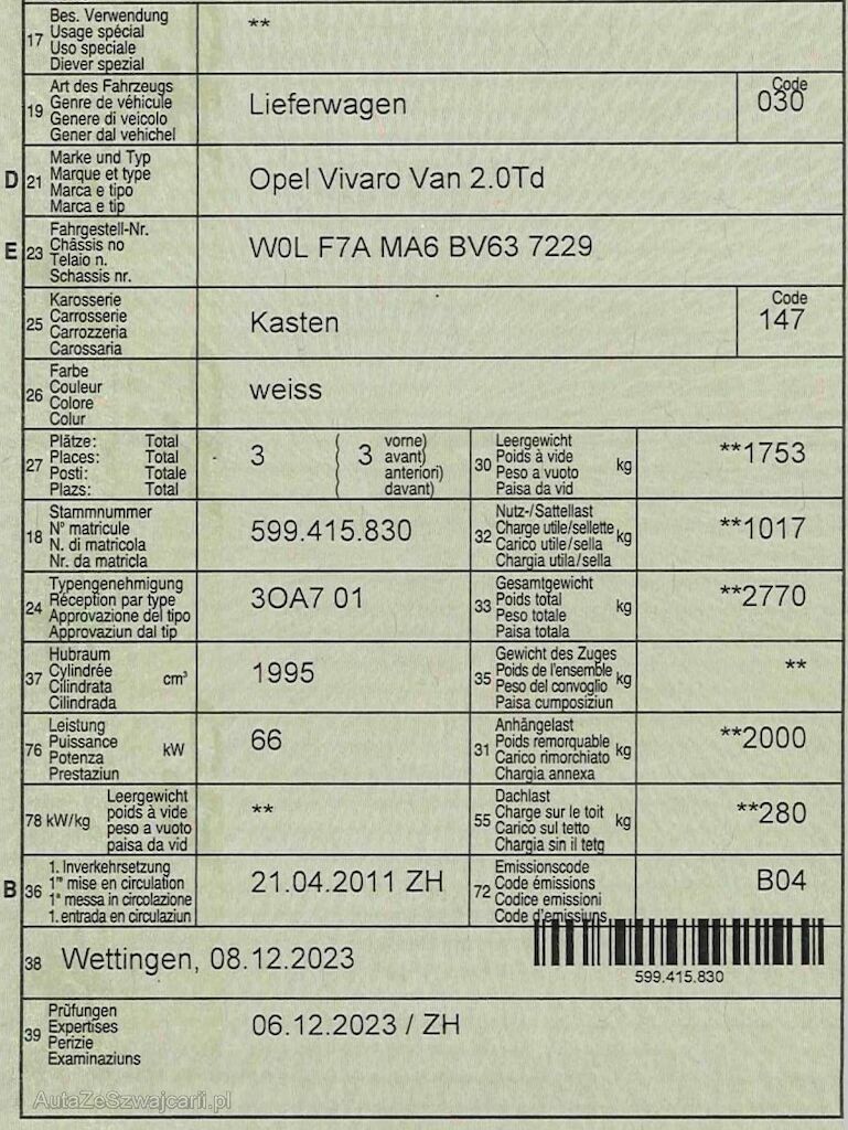 | Typ | Vivaro Van 2.0Td |