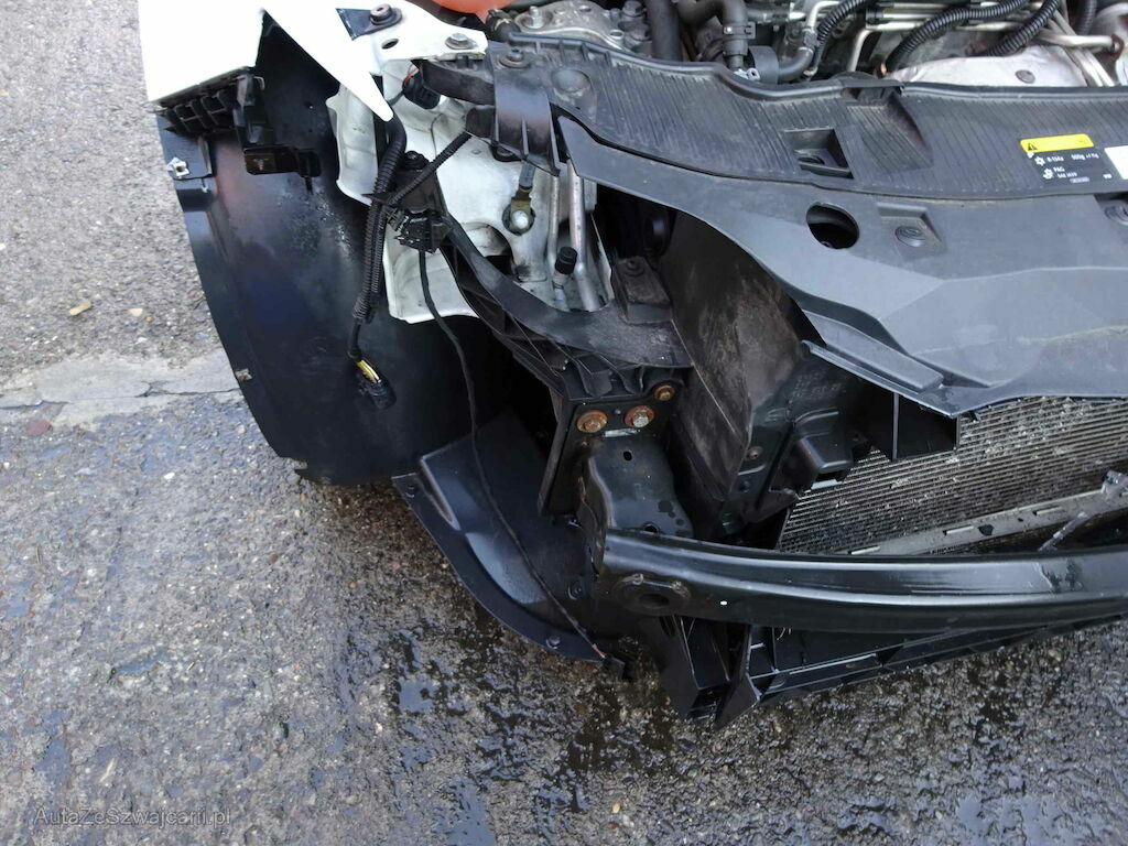 Motorhaube, Stossfänger vorne, Querträger, beide Scheinwerfer, Schlossträger und Kühlerpaket eingedrückt