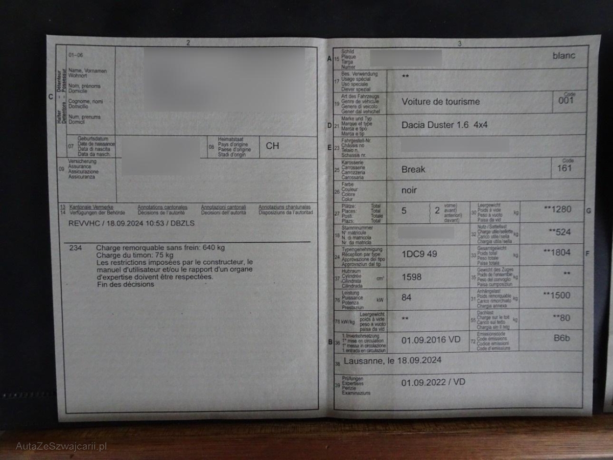 | Fahrzeugausweis | Vorhanden |