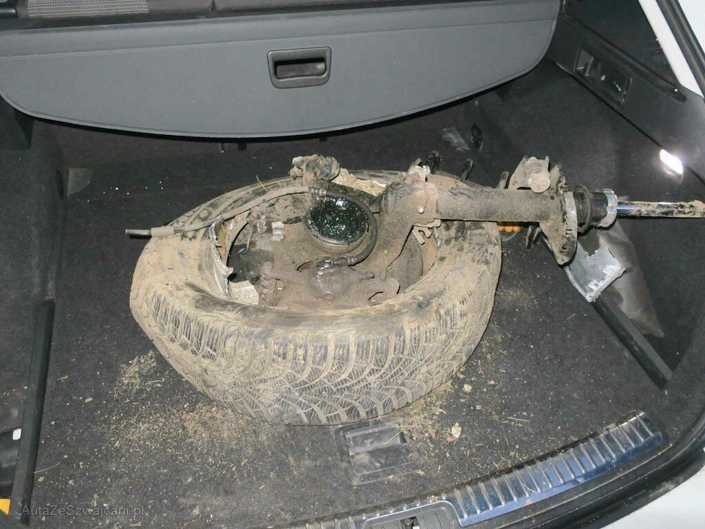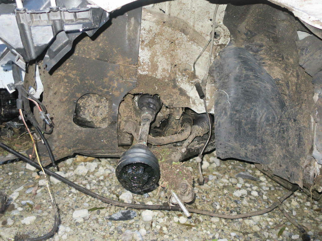 Ecke/Seite vl eingedrückt. Achse vl abgerissen. Motor läuft. Getribe vor Ort nicht prüfbar.
