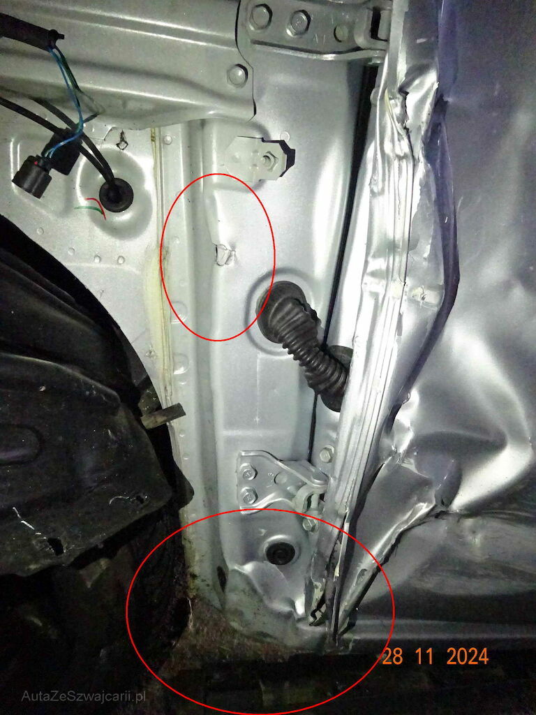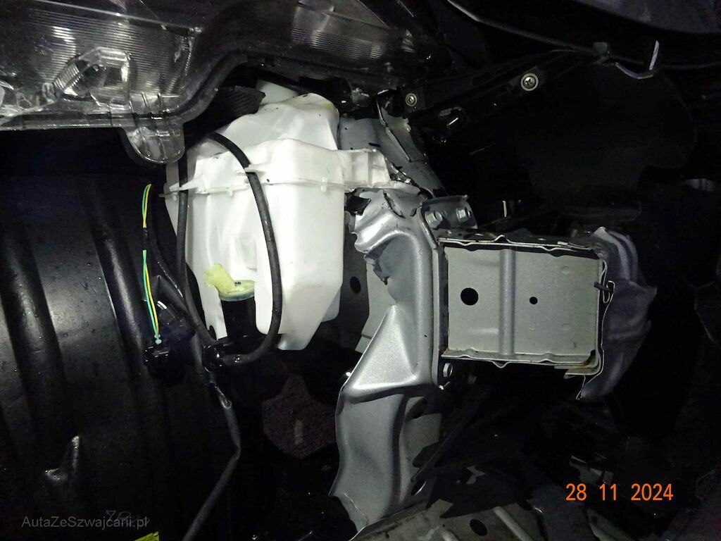 Motorhaube, Stossstange,beide Scheinwerfer, Frontblech, beide Chassisholmen, Kondensator, Kühler, Lüfter, Kotflügel, Radhaus, A- Säule, Türe v.l sind stark deformiert, Stossstange h.l ist gerissen