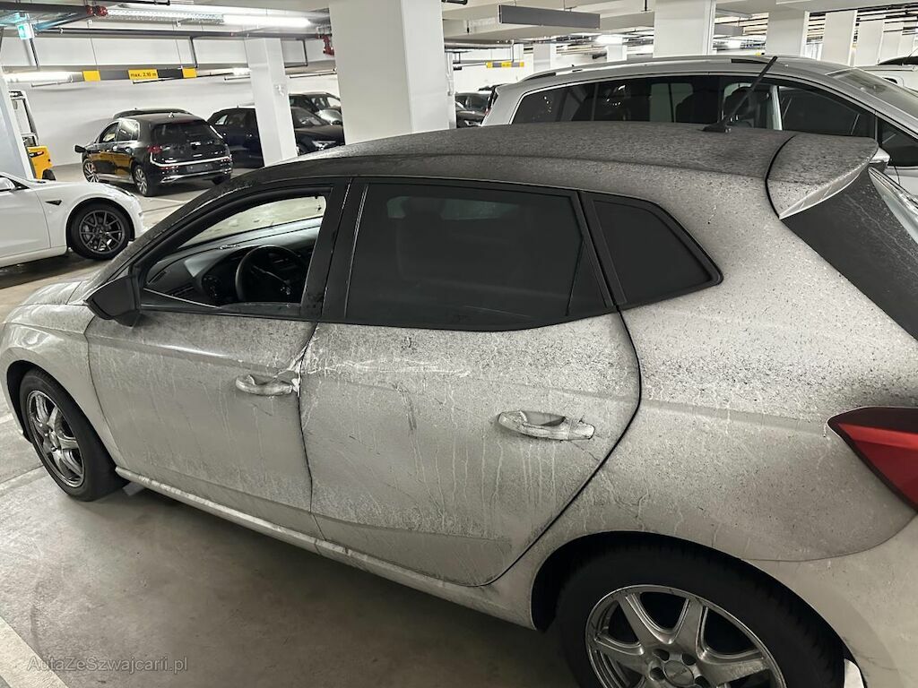 Das Fahrzeug stand in einer Tiefgarage, die gebrannt hat. Das gesamte Fahrzeug ist mit Russ bedeckt und im Fahrzeug riecht es nach verbrannten und rauchigen Rückständen.