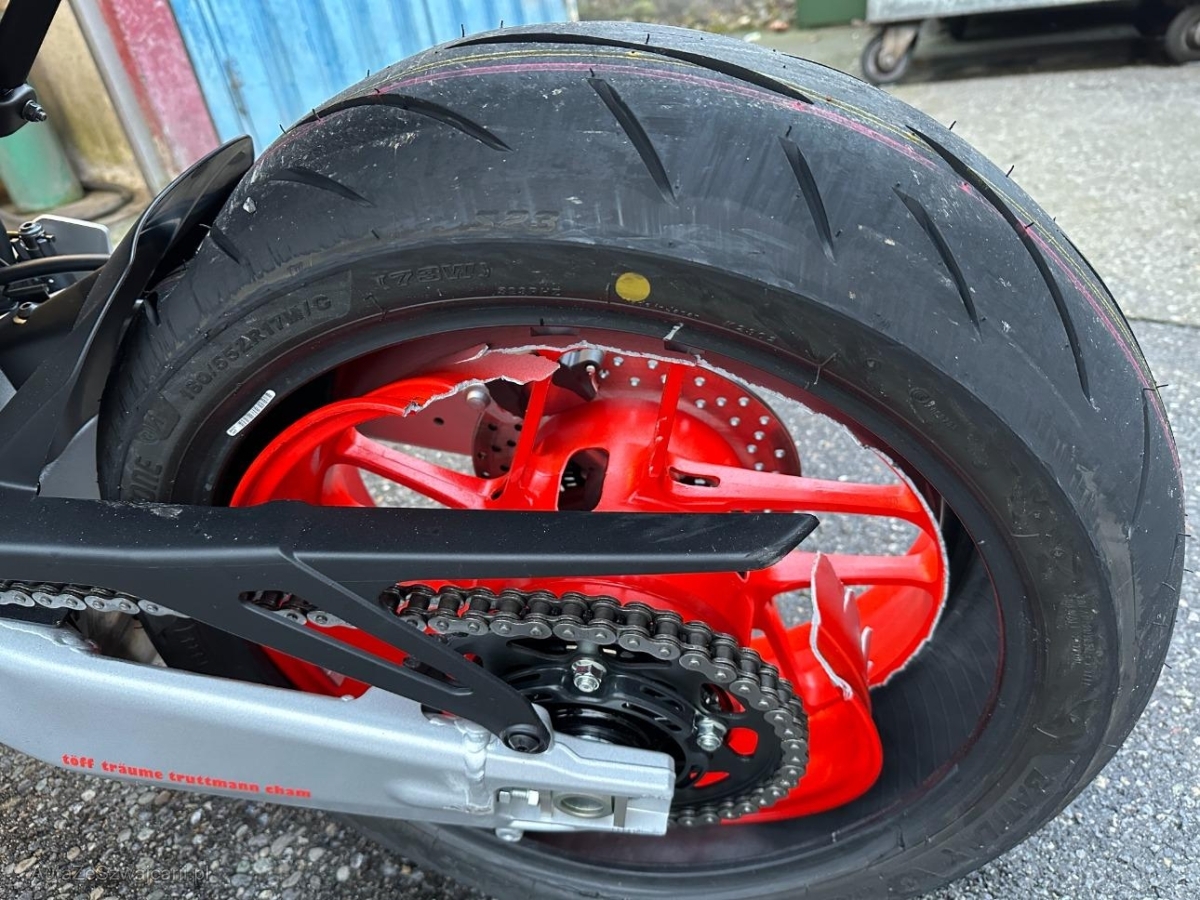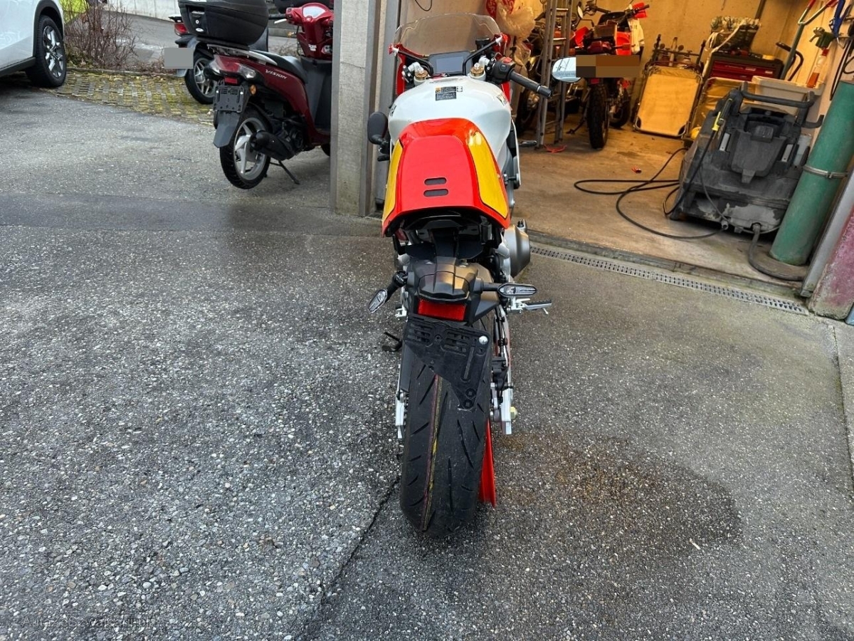 | Beschädigungen | Aussenspiegel links, Diverse Anbauteile, Fussraster links, Griff links, Heck, Heckverkleidung, Kabelstrang, Lenkanschlag, Motorgehäuse, Rad hinten, Rad vorne, Rahmen, Rücklicht, Schutzblech hinten, Schwinge, Seite links, Tank, Verschalungen hinten, Verschalungen links, Verschalungen vorne, Windschutzscheibe |