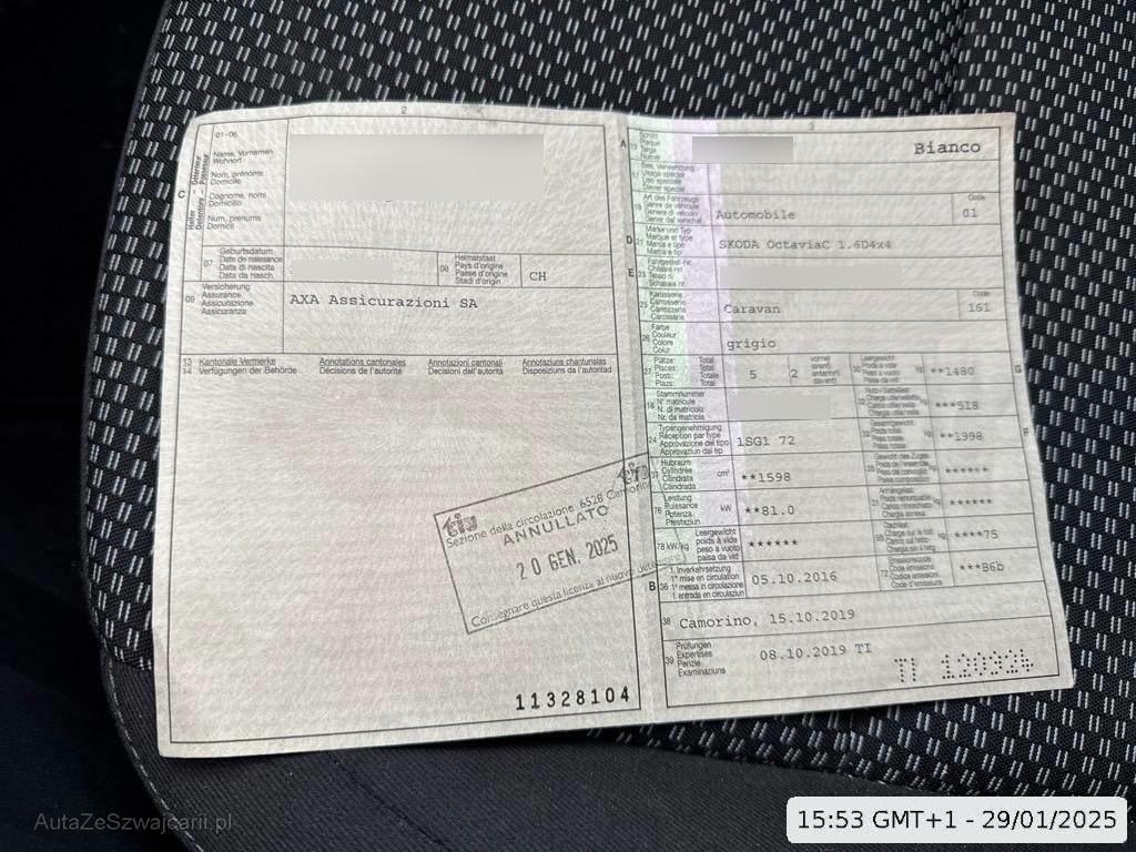 | Fahrzeugausweis | Vorhanden |