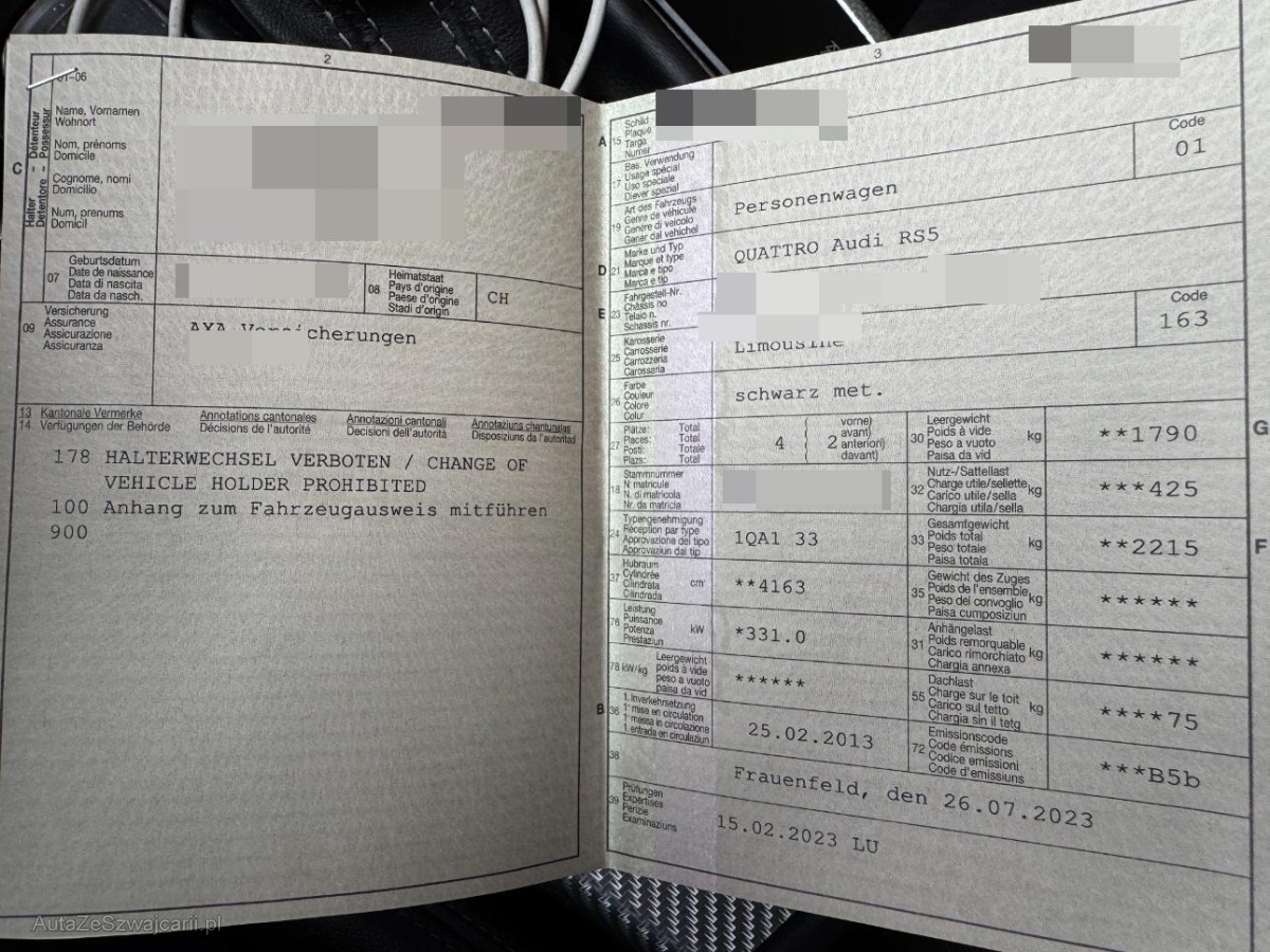 | Fahrzeugausweis | Vorhanden |