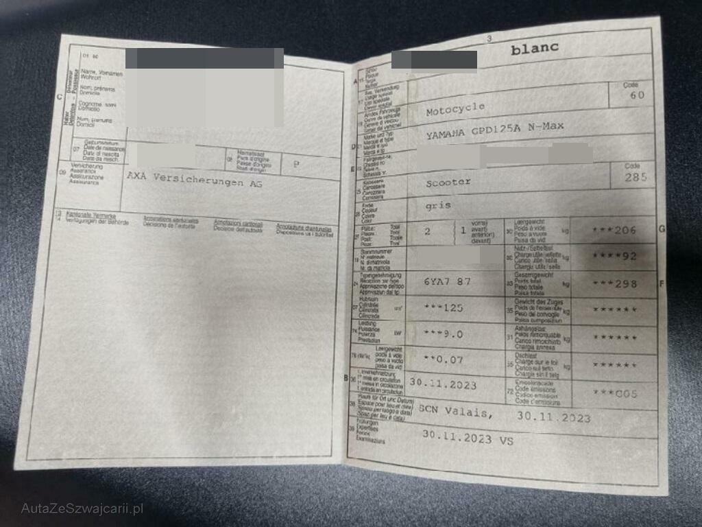 | Fahrzeugausweis | Vorhanden |