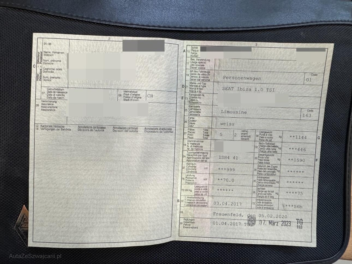 | Fahrzeugausweis | Vorhanden |