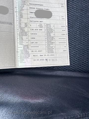 | Ausstattung | Serienaustattung Airbag Fahrer und Beifahrerseite Elektronische Wegfahrsperre Zentralverriegelung Elektrische Fensterheber vorne + hinten Aussenspiegel elektrisch verstellbar und heizbar ASR Antriebsschlupfregelung Servolenkung Sportfahrwerk Fernbedienung für Zentralverriegelung ESP Elektronisches Stabilitätsprogramm Nebelscheinwerfer Aussentemperaturanzeige Staub- und Pollenfilter Lenkrad verstellbar ABS und EBV Elektr. Bremskraftverteilung Vorbereitung für Radioeinbau Mittelarmlehne hinten mit Durchladesystem Reifendruck-Kontrollsystem RDK Sportsitze vorne Deaktivierung Beifahrerairbag Fussmatten vorne und hinten Sitzbezüge Leder/ Stoff Xenon-Scheinwerfer inkl. Waschanlage Innenspiegel automatisch abblendbar/ Regensensor Heckscheibenwischer inkl. Waschanlage Rücksitzbank und Lehne geteilt umklappbar Tagesfahrlichtschaltung Seitenschutzleisten Ablagefach unter Beifahrersitz Aktive Kopfstützen vorne 3 Kopfstützen hinten Reserve-Notrad Radio/ CD/ MP3 Kleine Telefon-Vorbereitung/ Dualantenne Leichtmetallfelgen 17" Zwei Zonen-Klimaautomatik Metallic-/ Perleffekt-Lackierung Park-Distanz-Sensor hinten Isofix-Vorbereitung für 2 Kindersitze hinten Wärmeschutzverglasung Seitenairbags ESP/ Hill Holder Kühlfach in Mittelkonsole Pack Leder klein Multifunktionsanzeige Maxi-DOT Brillenfach Aschenbecher und Getränkehalter Sportlederlenkrad 3-Speichen Vordersitze höhenverstellbar mit Lendenwirbelstützen Geschwindigkeitsregelanlage Schirmfach in Gepäckraumabdeckung Audio-Anschluss in der Jumbo-Box Keine Gewähr auf die Angaben der Serienausstattungen Sonderausstattung Sitzheizung vorne Dachreling SunSet/ dunkelgetönte Scheiben ab B-Säule Lichtassistentsystem (Coming- und Leaving Home Funktion) Doppelter Ladeboden |