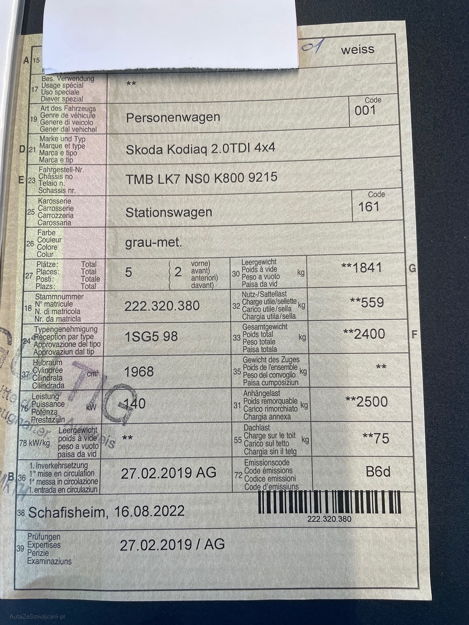 | Kommentar | Frontscheibe ist neu, wurde ersetzt ( hatte einen Steinschlag ) Fahrzeugbereifung und Ausstattung gemäss Fotos. Keine mechanische Prüfung, Fahrzeugkauf auf eigenes Risiko ab Platz ohne Nachwährschaft. Die Gewährleistung für Sachmängel wird wegbedungen. |