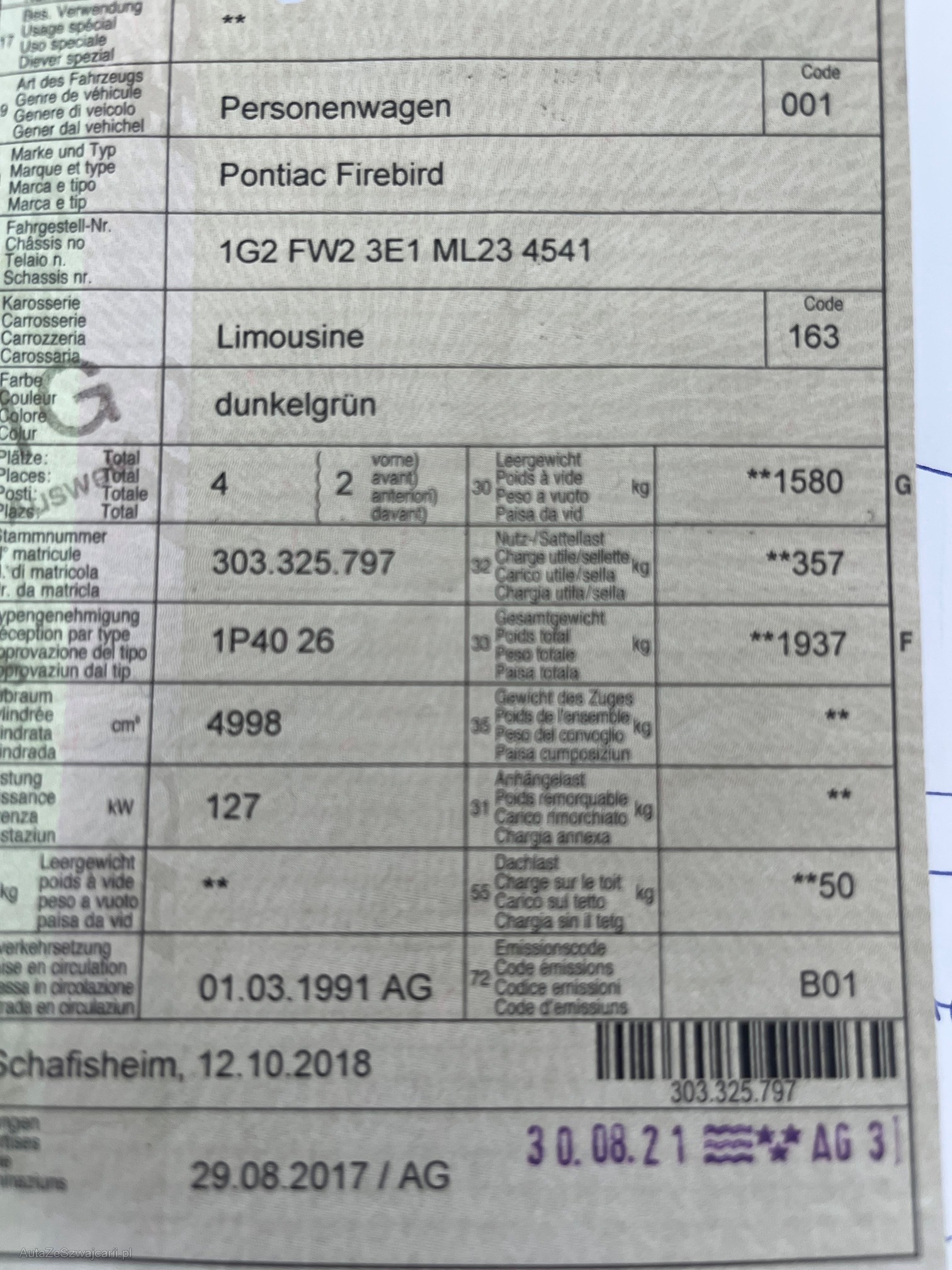 | VIN | 1G2FW23E1ML2341 |