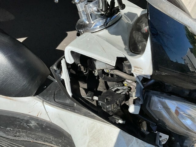 | Beschädigungen | Sonstige Schäden Div. Teile sind leicht beschädigt. Weitere Beschädigungen Zündschloss, Frontverkleidung, Innenschürze, Frontscheinwerfer aufgebrochen und beschädigt. |