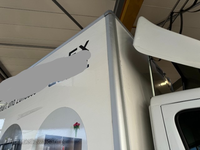 | Beschädigungen | Links Linke Seite beschädigt. Front Front eingedrückt. Weitere Beschädigungen Kofferaufbau vorne links oben beschädigt, weitere Beschädigungen rechte Seite |