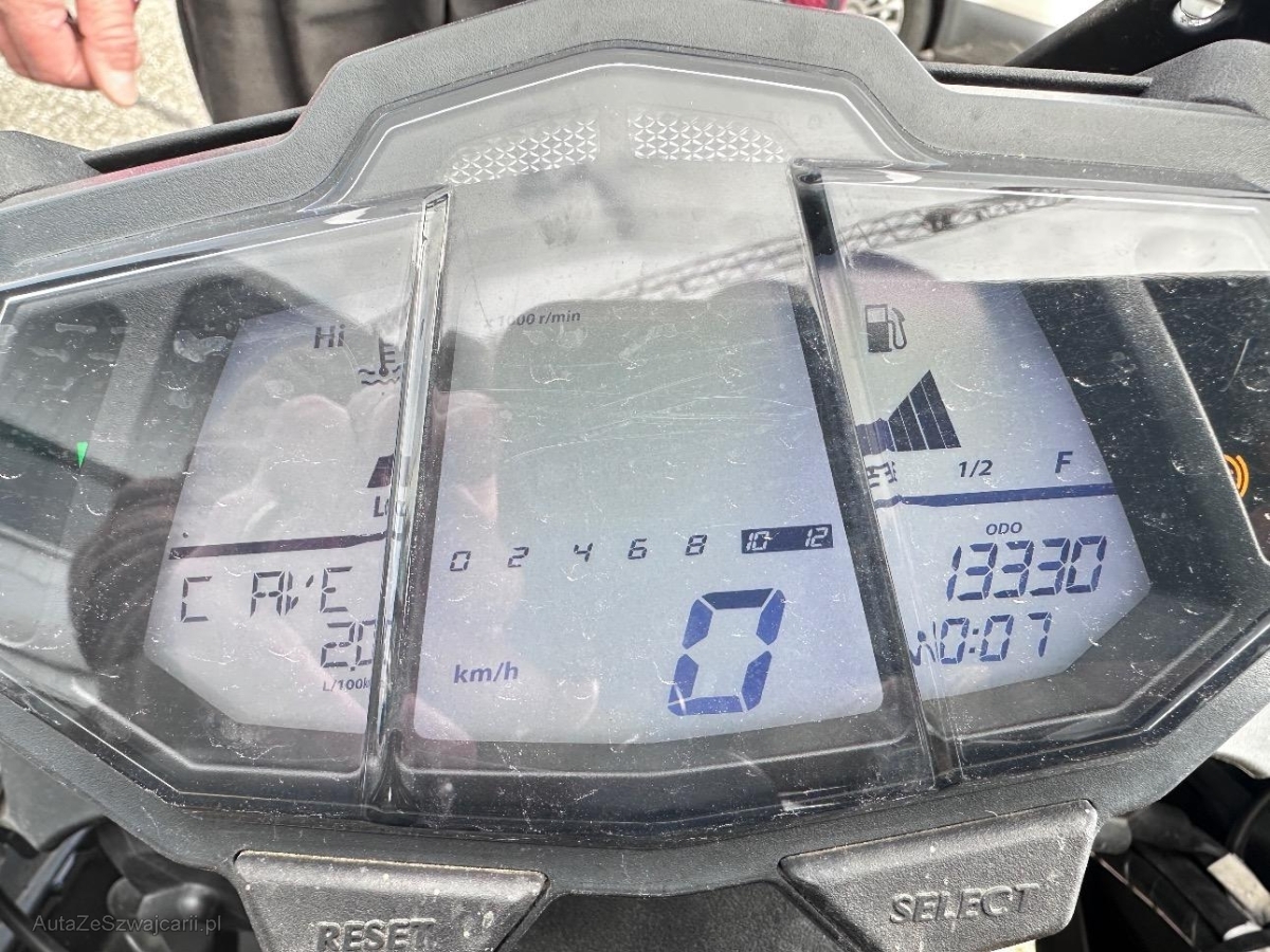 | Beschädigungen | Aussenspiegel links, Diverse Anbauteile, Front, Fussraster links, Gabelholm, Griff links, Heckverkleidung, Lenker, Seite links, Verschalungen links, Verschalungen vorne, Windschutzscheibe |