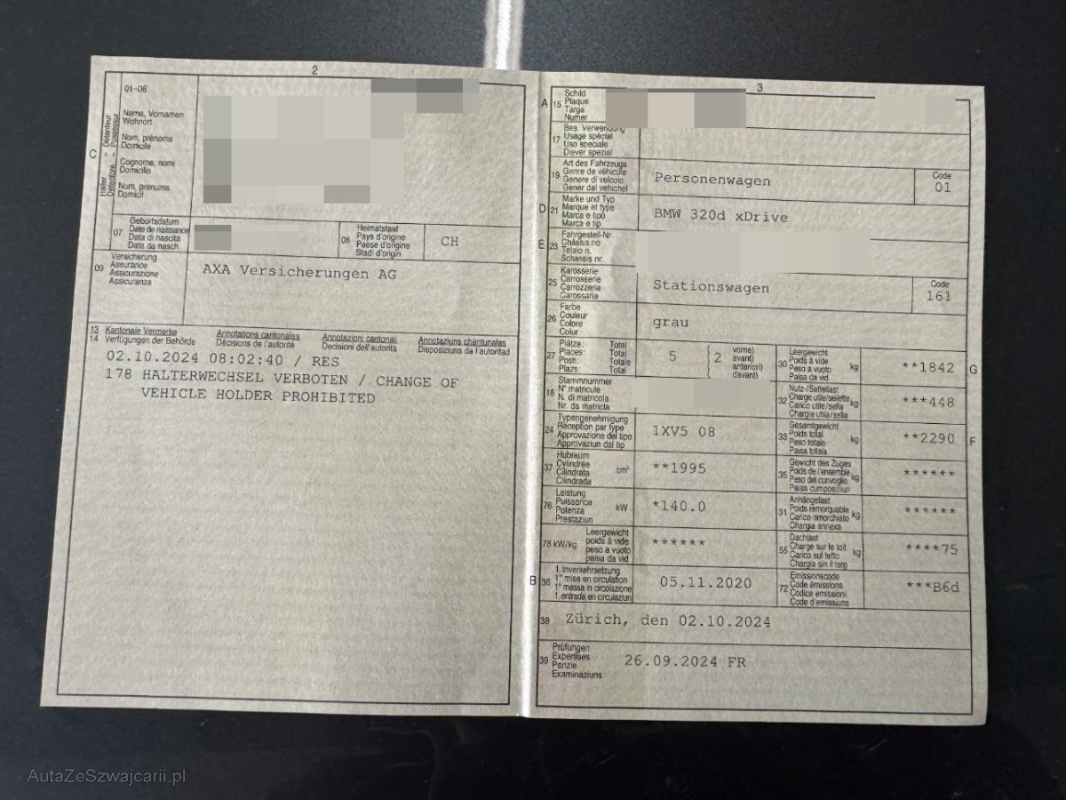 | Fahrzeugausweis | Vorhanden |