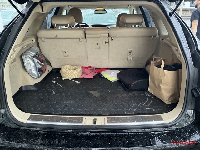 | Serienausstattung | Getriebe: Stufenloser Automat, Regensensor und automatisch abblendbarer Innenspiegel und Aussenspiegel, Ein- und Ausstiegshilfe (einfahrbares Lenkrad mit Memory), Tageskilometerzähler, Aktivkohlefilter (Geruchsfilter), Integriertes Fahrdynamikmanagement VDIM, Aux-In Anschluss, 3 Kopfstützen hinten, Beleuchtetes und abschliessbares Handschuhfach, Airbag: Airbag Fahrer und Beifahrer, Vordersitze elektrisch verstellbar, Fahrersitz mit Memory-Funktion, Holzapplikationen, Licht: Drittes Bremslicht, Media: Bluetooth-Schnittstelle für Mobiltelefon, Adaptives Kurvenlicht, HID-Bi-Xenon-Scheinwerfer mit automatischer Höheneinstellung, Digital Uhr, Airbag: Seitenairbag für Fahrer und Beifahrer, Licht: Nebelschlussleuchte, 9 Lautsprecher, Berganfahrhilfe, Rücksitze längsverstellbar, Bremsassistent (BAS), Airbag: Window-Kopfairbags, Seitenairbags hinten, Allradantrieb permanent, Assist: Tempomat, Bordcomputer, ISOFIX Kindersitzvorrichtung, Aussenspiegel rechts und links beheizt, elektrisch verstell- / und einklappbar mit Memory-Funktion, Sitze: Vordersitze heizbar, Beide Make up-Spiegel beleuchtet, Aussentemperaturanzeige, Tankdeckel-Entriegelung von innen, Audiosystem, Smart Entry-/Start-System, Abgedunkelte Seiten- und Heckscheibe, Beleuchtetes Einstiegssystem mit Umfeldbeleuchtung, Stabilitäts- und Traktionskontrolle (VSC und TRC), Automatikgurt in Fondmitte, Seitenaufprall-Schutzsystem, Multifunktionslenkrad in Leder, Lenksäule elektrisch einstellbar mit Memory, Wegfahrsperre elektronisch, 4 Leichtmetallfelgen 18J mit Pneu, Servolenkung geschwindigkeitsabhängig, Polster: Leder-Ausstattung, Lichtwarnsummer, USB-Anschluss, Stossstangen und Aussenspiegel in Wagenfarbe, Alarmanlage mit Innenraumüberwachung und Neigungssensor, Gurtstraffer vorne und hinten, Kofferraumfernentriegelung, Airbag: Knie-Airbag für Fahrer und Beifahrer, Katalysator geregelt, Heckscheibenheizung, Elektrische Fensterheber vorne + hinten, Zentralverriegelung mit Fernbedienung und automatischer Türverriegelung, Drehzahlmesser, Sitze: Rücksitzlehne geteilt abklappbar, CD-Wechsler 6-fach, Licht: LED Heckleuchten, Rückfahrkamera, Antiblockiersystem (ABS), Sitze mit Schleudertrauma-Schutzsystem, Nebelscheinwerfer, Klimatisierungsautomatik |