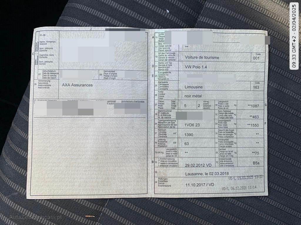 | Fahrzeugausweis | Vorhanden |