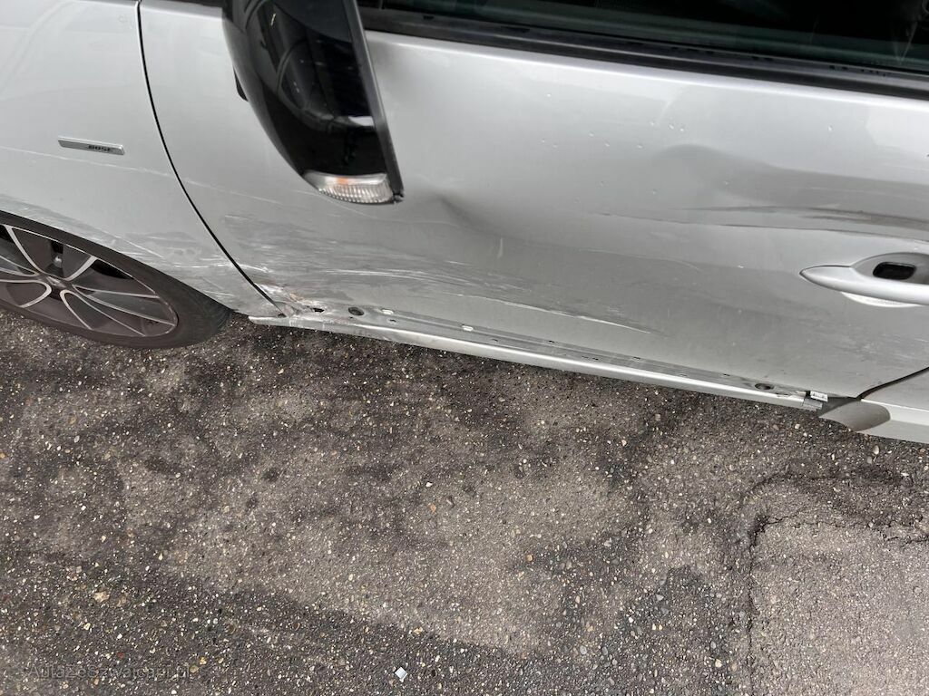 Anprall an der linken Seite, dabei wurde der Schweller und die Türe eingedrückt, der Stossfänger vorne und Türe hinten verkratzt und der Kotflügel ist gerissen.