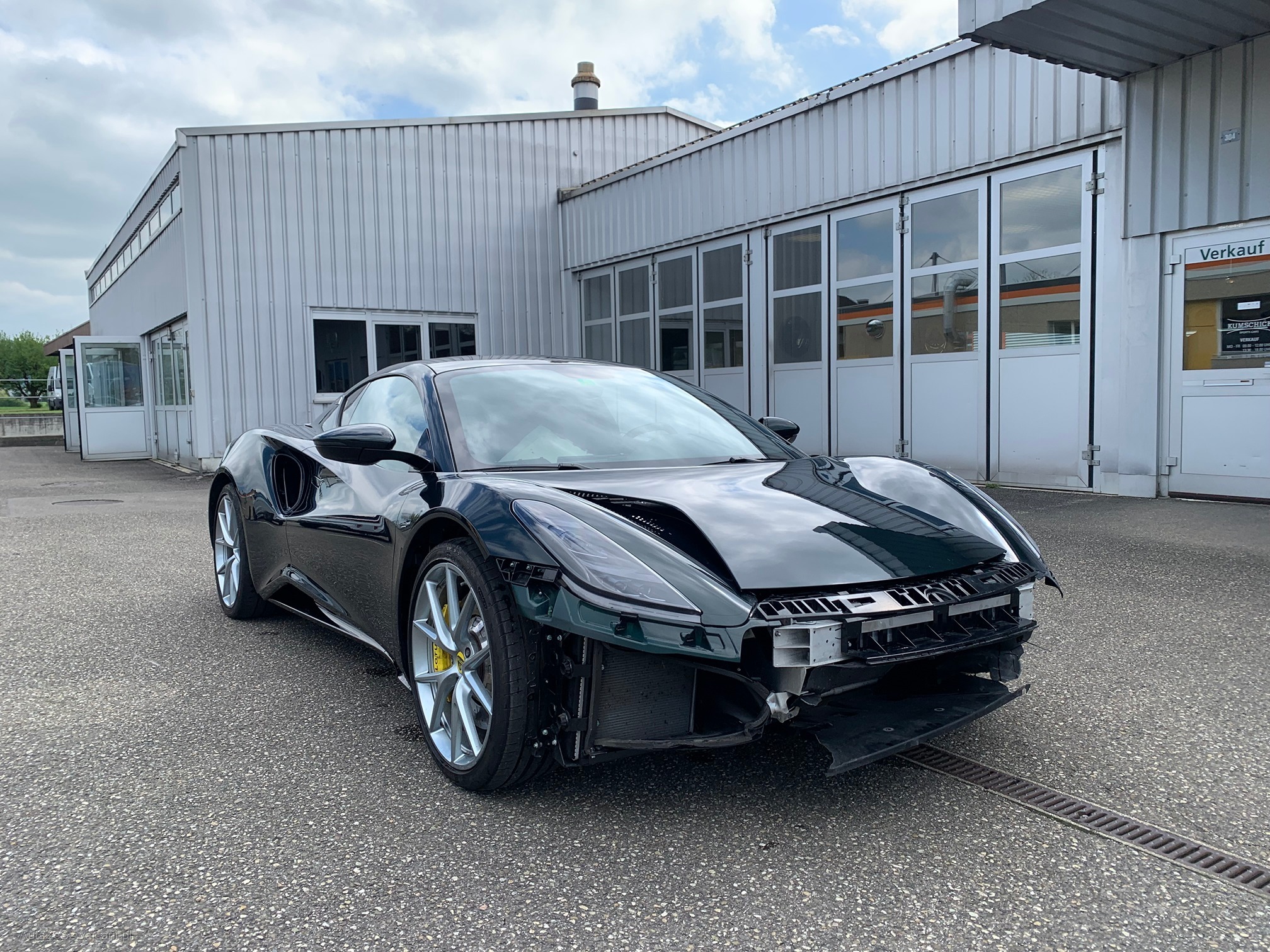 | Kommentar | Unfallfahrzeug: Fahrzeug ist auf ein Hindernis aufgefahren. Dadurch wurde der Chassisholmen vorne in der Mitte sowie das im Chassis befestigte Bodenblech sowie die Front etwas beschädigt (Frontstossstange, Luftleitbleche, Halterungen, Stabilisator, Radhausverkleidung etc. Service ist fällig. 2 Reifen müssten ersetzt werden, 3 Felgen sind angefahren. Das Fahrzeug aktuell zerlegt zu Inspektionszwecken, ist aber fahrbar, wenn es komplettiert wird. Dieser Lotus Emira V6 First Edition ist aus erster Hand und ist vollständig foliert. |