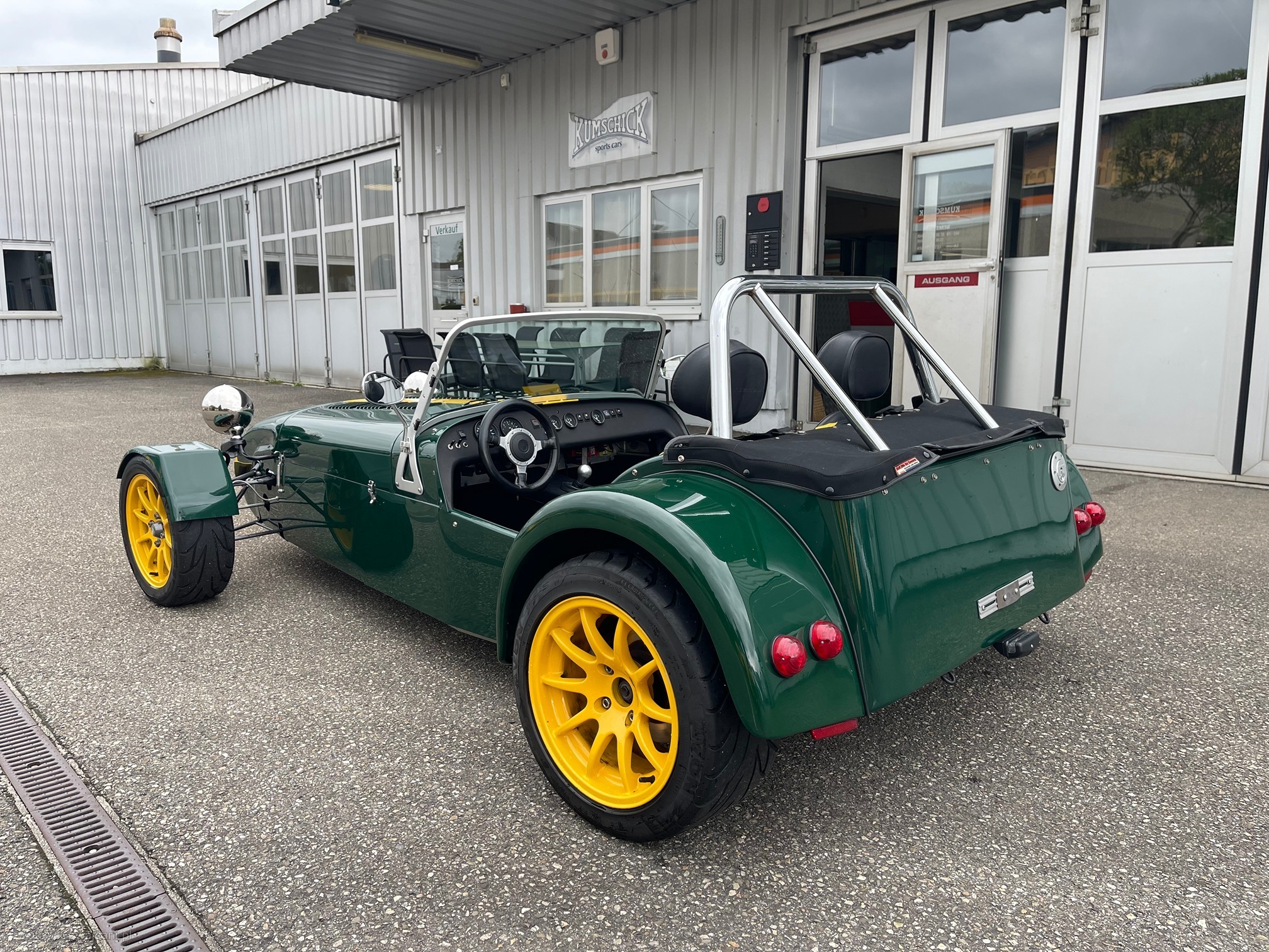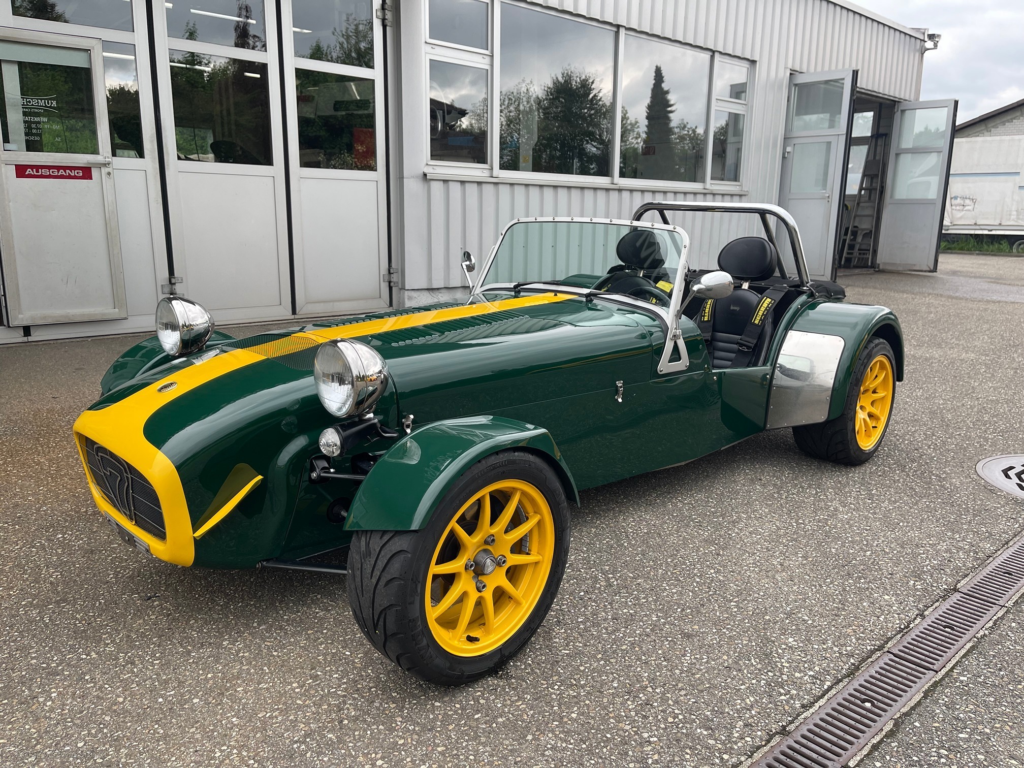 | Kommentar | Der Caterham Seven CSR 200 (Einzelradaufhängung/Push Rod) mit seinem drehmomentstarken 2.3l Cosworth-Motor ist ein gesuchtes Modell. Das Auto ist fahrbar, hat jedoch einige Mängel, welche nachfolgend aufgeführt sind. Uns fehlt schlichtweg die Zeit, dieses Auto aufzubereiten. Ein interessantes Fahrzeug für jemanden, der Zeit hat, dies selbst aufzubereiten. Wir verkaufen das Fahrzeug ab Platz, ohne jegliche Garantie und Gewährleistung. Mängel/Arbeiten: Grosse Serviceinspektion (Motorenoel und Oelfilter ers.) mit folgenden Zusatzarbeiten: Ersetzten: • Bremsflüssigkeit • Kühlwasser • Nebenriemen • Zündkerzen • Getriebeoel • Differenzialoel • Luftfilter Vorführen: • MFK bereitstellen und vorführen Optische Mängel: • Unterboden fahrerseitig etwas angefahren (kann so belassen werden) • Alle O-Ringe Instrumentenbrett ers. • Fahrersitz stark abgenutzt • Seitenverkleidungen innen links und rechts kratzer • Motorhaubengummi ers. • Kotflügel hinten rechts beschädigt • Druckknöpfe setzen für Dach • Div. Beulen (Motorhaube) • Div. Schrauben im Innenraum ers. • Alle Felgen angefahren, reparierbar • Nabendeckel hinten links und rechts fehlen Sonstige Mängel: • Differenzial: Pignonlagerspiel beheben • Windschutzscheibe Steinschlag Beifahrerseite, ers. • Alle Reifen ers. • Lenkungsspiel einstellen, Nachlauf einstellen VA • Lenkgeometrie vermessen/ einstellen • Beide Kreuzgelenke ausgeschlagen, ers. • Uniball hinten Spurstange links und rechts ers. • Motorlager spröde, ers. • Bremsflüssigkeitsnachlaufleitungen ers. • Bremsschleuche vorne ausrichten • Kühlerhalter ers. gebrochen • Manchetten Querlenker oben ers. • Nummerbeleuchtung verlängern/Glas ers. • Abgasanlage umbauen auf Original • Kühlwasserexpansionsgefäss rissig, ers. • Lichtschalter ers. • LED-Leuchtmittel V demontieren, Originale einbauen • Piepser Blinker abklemmen • Bremskontrollleuchte/Gebläseschalter: Birne ers. • Schalter Scheibenwischanlage ers. • Wischerblätter ers. • Spannungsüberwachung und Natel-Ladegerät demontieren |