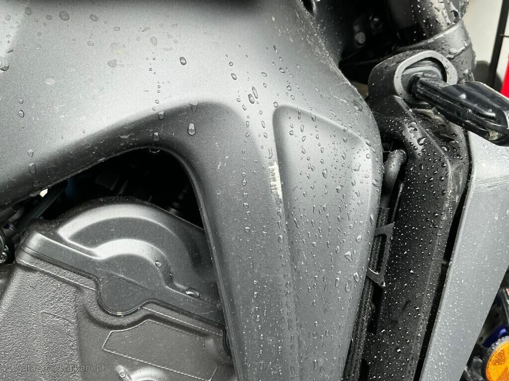 Carter moteur droit, carénage droit, levier de frein arrière et cale pied conducteur droit; rayés.