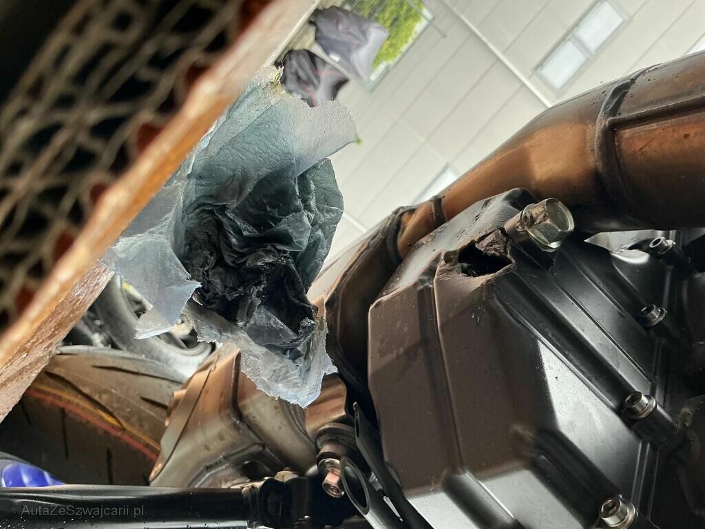 Carter moteur cassé.