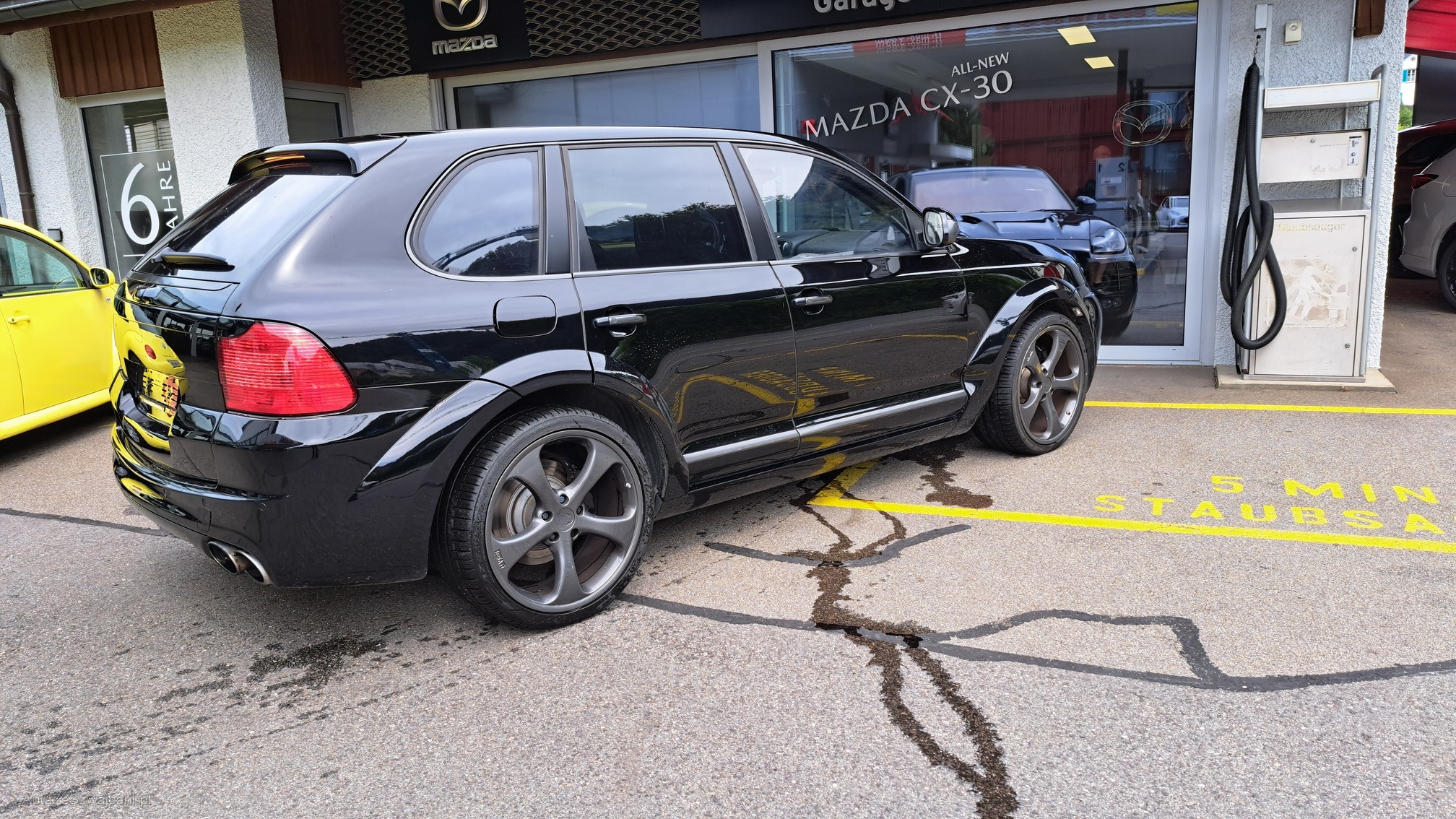 | Kommentar | Kühlwasseverlust V-Spinne hinten oberhalb Getriebeglocke. Felgenrand gem. Foto Kleinere Kratzer Heckdeckeldämpfer defekt Fz. Aufladen zum überführen Wasserverlust |
