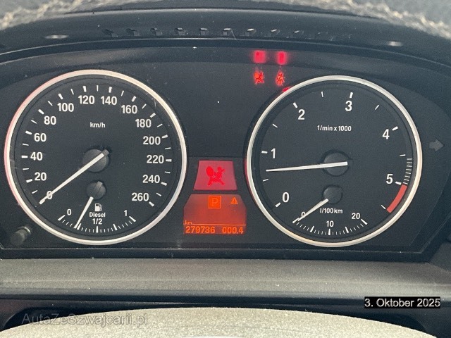 | Serienausstattung | Dynamische Stabilitätskontrolle (DSC), Drittes Bremslicht, iDrive-System, Airbag: Airbag Fahrer und Beifahrer, Innenlicht-Abschaltverzögerung, Assist: Anfahrassistent, Halogenscheinwerfer, Hill Descent Control (HDC), Gurtstraffer vorne, Aussentemperaturanzeige, Tagfahrlicht, Laderaumabdeckung, Zentralverriegelung mit Fernbedienung, Rücksitzlehne geteilt abklappbar, Kartentaschen an den Rückenlehnen, Licht: Nebelschlussleuchte, Digital Uhr, Räder: Reifendruck-Kontrollanzeige, Weisse Blinkleuchten, Wendematte für Gepäckraumboden, Mittelarmlehne hinten, Lenkrad: Multifunktionslenkrad, Nichtraucherausführung, Partikelfilter und Oxydationskatalysator, 3 Speichen-Lederlenkrad, Höhenverstellbare Gurten vorne, Lederhandbremshebel, Info-Display, Chrom-Line Exterieur, Wassertemperaturanzeige, Leichtmetallfelgen im Sternspeiche 243 17J mit Pneu, Elektrische Fensterheber vorne + hinten, Einstiegsschienen, Wegfahrsperre elektronisch, Beleuchtetes und abschliessbares Handschuhfach, Interieurleisten, Abschliessbare Radschrauben, Oelstandsanzeige, Lichtwarnsummer, Start-/Stop-Knopf, Radio BMW Business CD, Assist: Tempomat mit Bremsfunktion, Leuchtweitenregulierung elektrisch, Vordersitze mit elektrischer Höhen- und Lehnenverstellung, Beide Make up-Spiegel beleuchtet, Grün getönte Scheiben, Servolenkung geschwindigkeitsabhängig, Scheibenwischer vorne mit Regensensor und automatischem Einschalten der Abblendlichter, Leseleuchten vorne, Veloursfussmatten vorne und hinten, Antiblockiersystem (ABS), Verbandskasten, ISOFIX Kindersitzvorrichtung, Drehzahlmesser, Bremsassistent (BAS), Bordcomputer, Kühlergrill verchromt, Automatische Stabilitäts- und Traktions- kontrolle, Pollenfilter (Staubfilter), Zusatzheizung, Window-Kopfairbags, Wartungsintervall-Anzeige, Stoff-Ausstattung, Aktive Kopfstützen, Lackierung: Uni-Lackierung, Stossstangen in Wagenfarbe, Zweiklanghorn, 3 Kopfstützen hinten, Abblendlichtausschaltverzögerung 'Follow me home', Tageskilometerzähler, Getriebe: 6-Stufen-Automat Steptronic, Klimatisierungsautomatik, Aussenspiegel und Türgriffe in Wagenfarbe, Aufklappbare Heckscheibe, Scheibenwaschdüsen beheizt, Allradantrieb permanent, Applikationen, Sitzbelegungserkennung für Beifahrersitz, Nebelscheinwerfer, Aux-In Anschluss, Sicherheitstrennnetz oder /-gitter im Gepäckraum, Heckscheibenheizung, Scheibenwischer vorne mit Intervall, Lenkrad: Lenkrad längs- und höhenverstellbar, Antennen-Diversity, Ausstiegsleuchten in den Türen, Airbag: Seitenairbag für Fahrer und Beifahrer, Bremsbelag-Verschleissanzeige, Leseleuchten hinten, Aussenspiegel rechts und links beheizt und elektrisch verstellbar, asphärisch gewölbtes Spiegelglas, 3-Punkt-Sicherheitsgurte auf allen Plätzen |