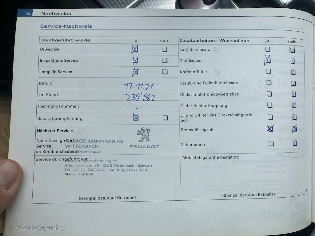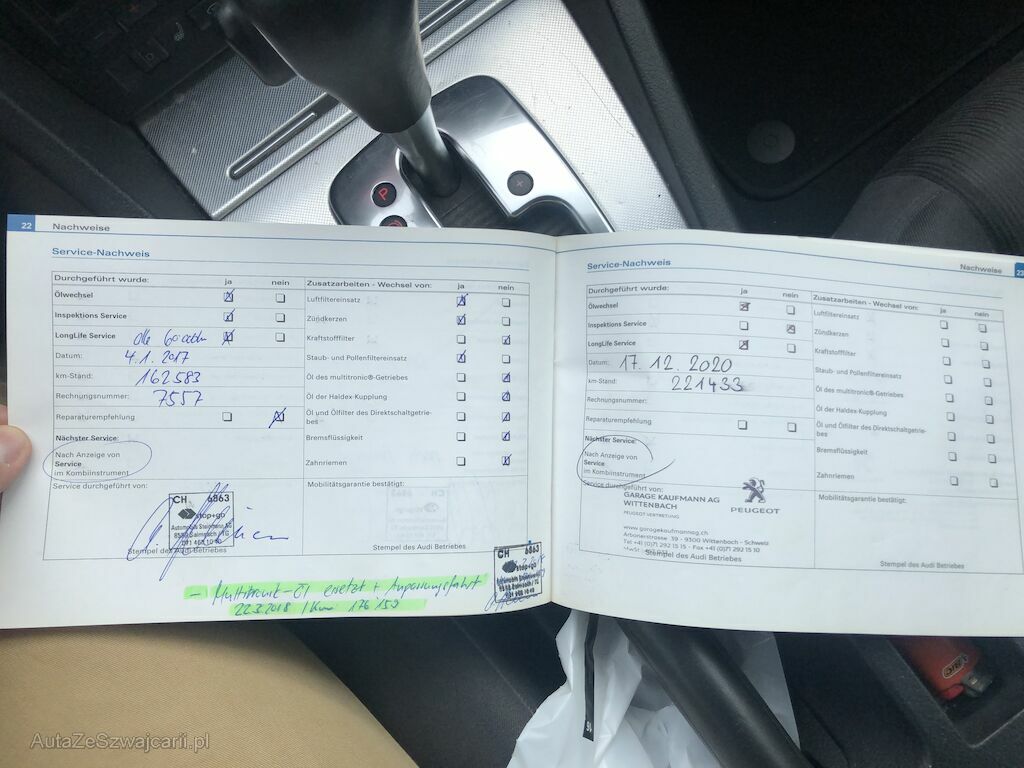 | Information | Div. Gebrauchsspuren, siehe Fotos - Querlenker VR + VL oben - Auspuffschelle ersetzen - Achsmanschette VL innen defekt - Bremsschlauch VR + VL zu ers. 1x Schlüssel Winterbereift |