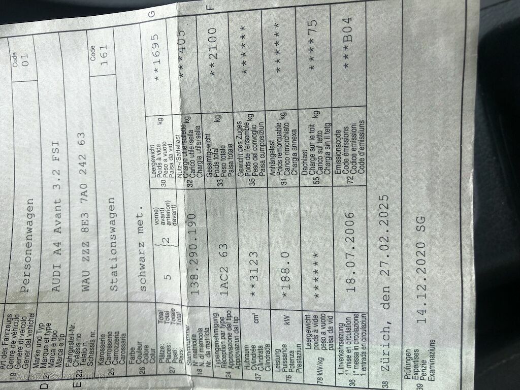 | Typ | A4 AVANT 3.2TFSI / 255PS / Automat / PDK |
