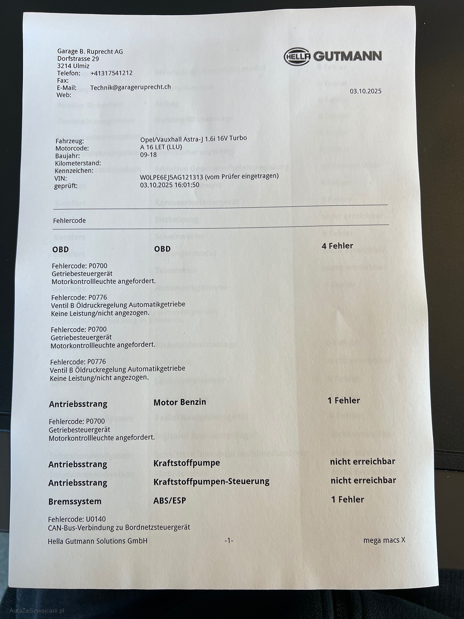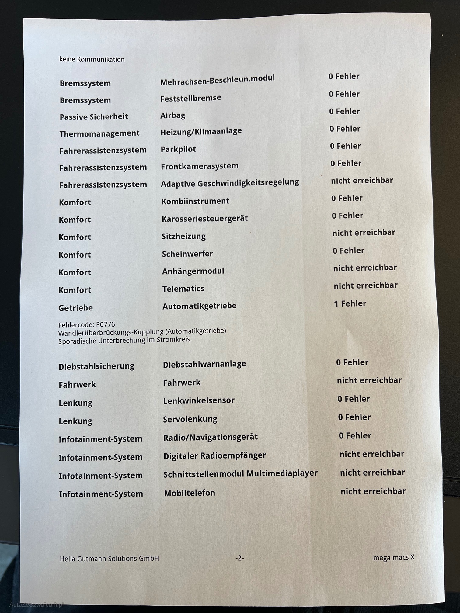| Kommentar | Es wurde kein genauer Werkstattest durchgeführt, lediglich der Fehlerspeicher ausgelesen. Auto kann nur nach vorne gefahren werden, Rückwärts kein Kraftschluss Verkauf ohne Garantie, Wandelungen und Minderungen sind ausgeschlossen. |