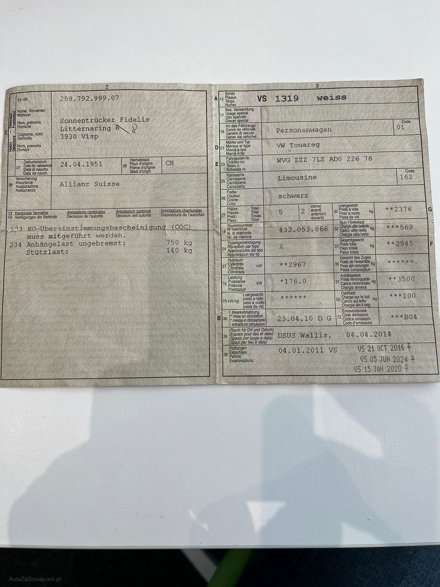| Kommentar | Kein Werkstatttest gemacht! |