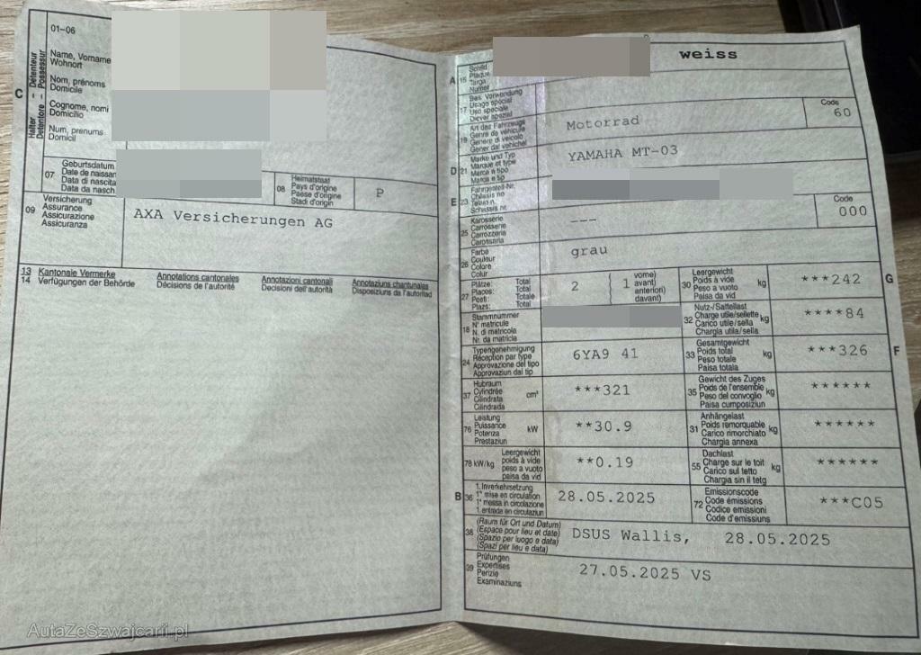 | Fahrzeugausweis | Vorhanden |