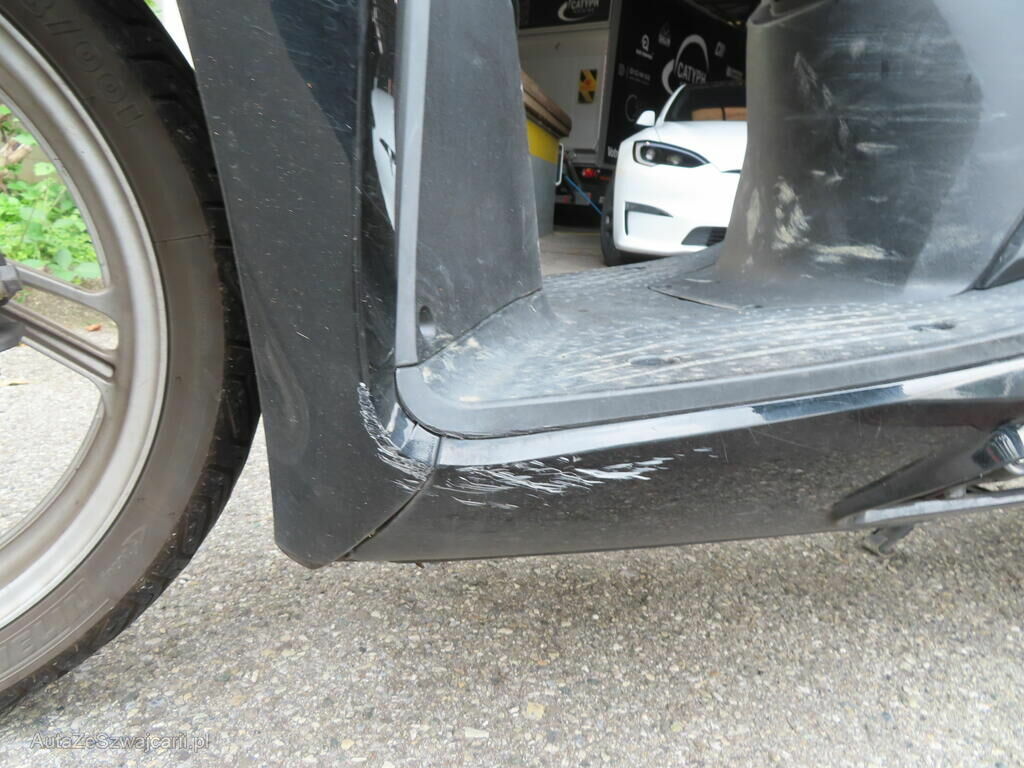 Pare-boue arrière, suspension, top case, protection échappement, roue avant, levier, embout de guidon, pare-boue avant, carénages, etc; endommagés.