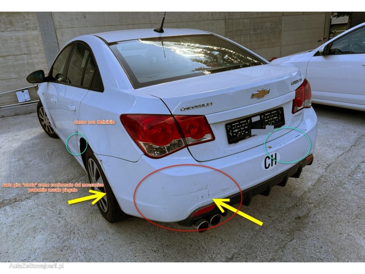 | Beschädigungen | Diverse Gebrauchspuren, Heck, Heck links, Hinterachse, Rad hinten links, Radaufhängung hinten links, Seitenwand links, Stossstange hinten, Türe hinten links |