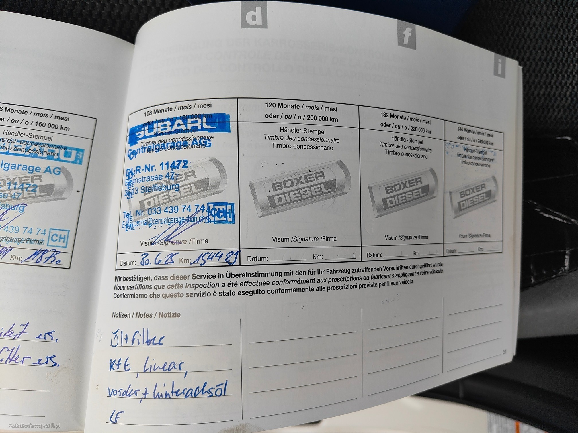 Kommentar | Gebraucht, läuft gut. Oilverdünnungsanzeige wurde kürzlich gelöscht, kommt aber immer wieder. Diverse Kratzer und Dellen gemäss Fotos. Fahrer Sitz mit Klebeband repariert. |
