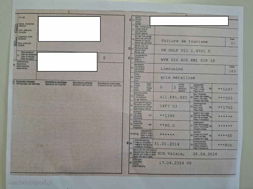 Typ | Golf VII 1.4 TSI 5 |