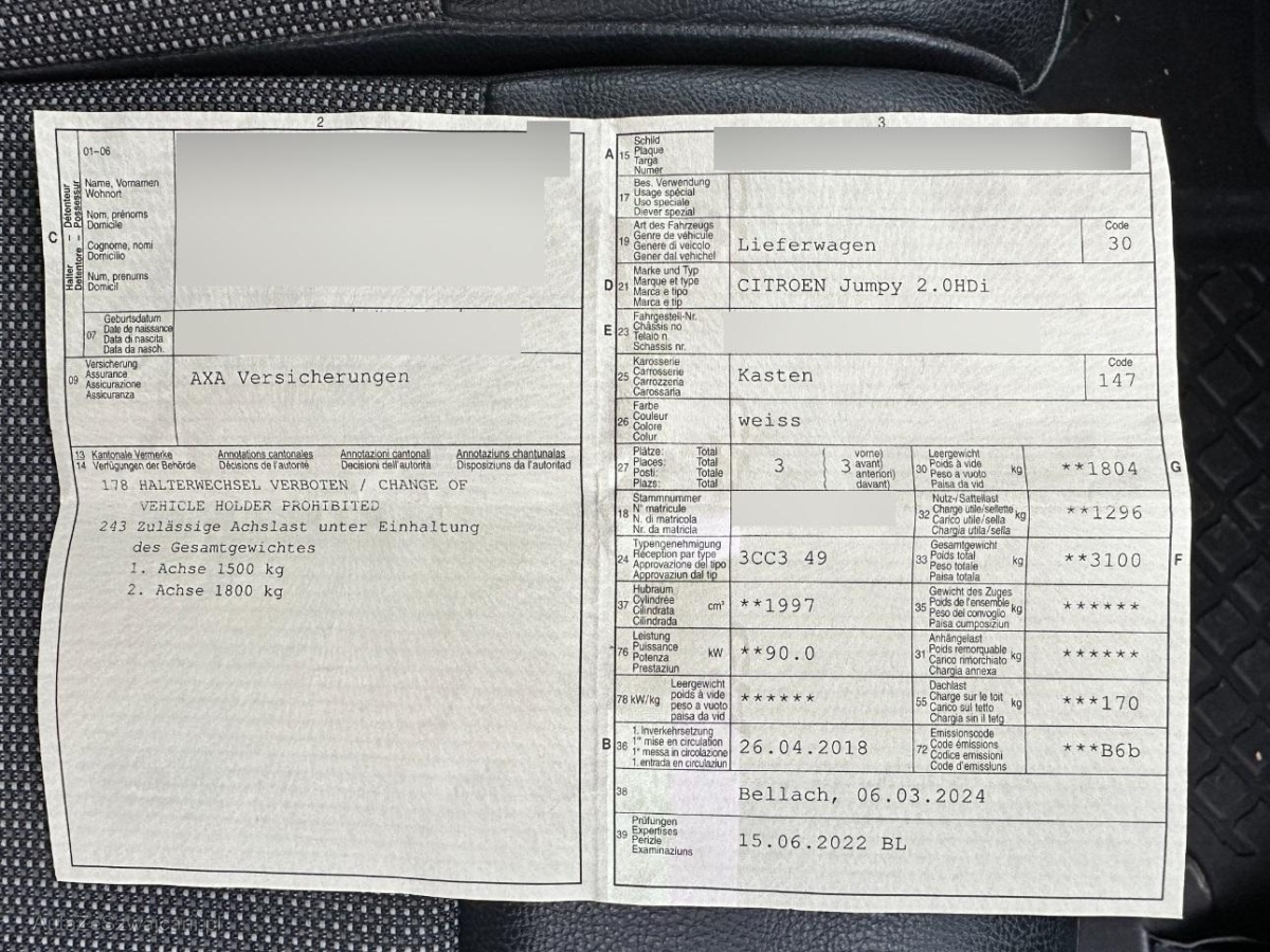 Fahrzeugausweis | Vorhanden |