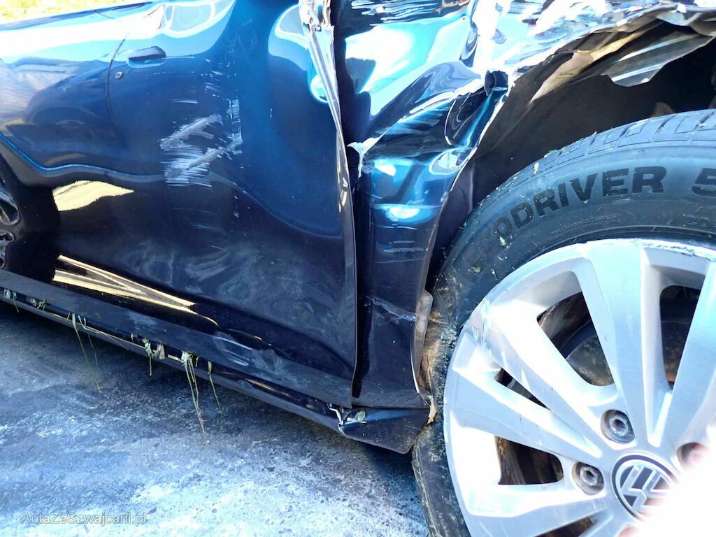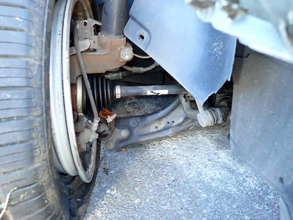 Stosstange, Kühlergrill, Scheinwerfer, Motorhaube, Kotflügel, Radhaus, A-Säule, Türe, Radaufhängung, Lenkung, Reifen und Felge vorne rechts