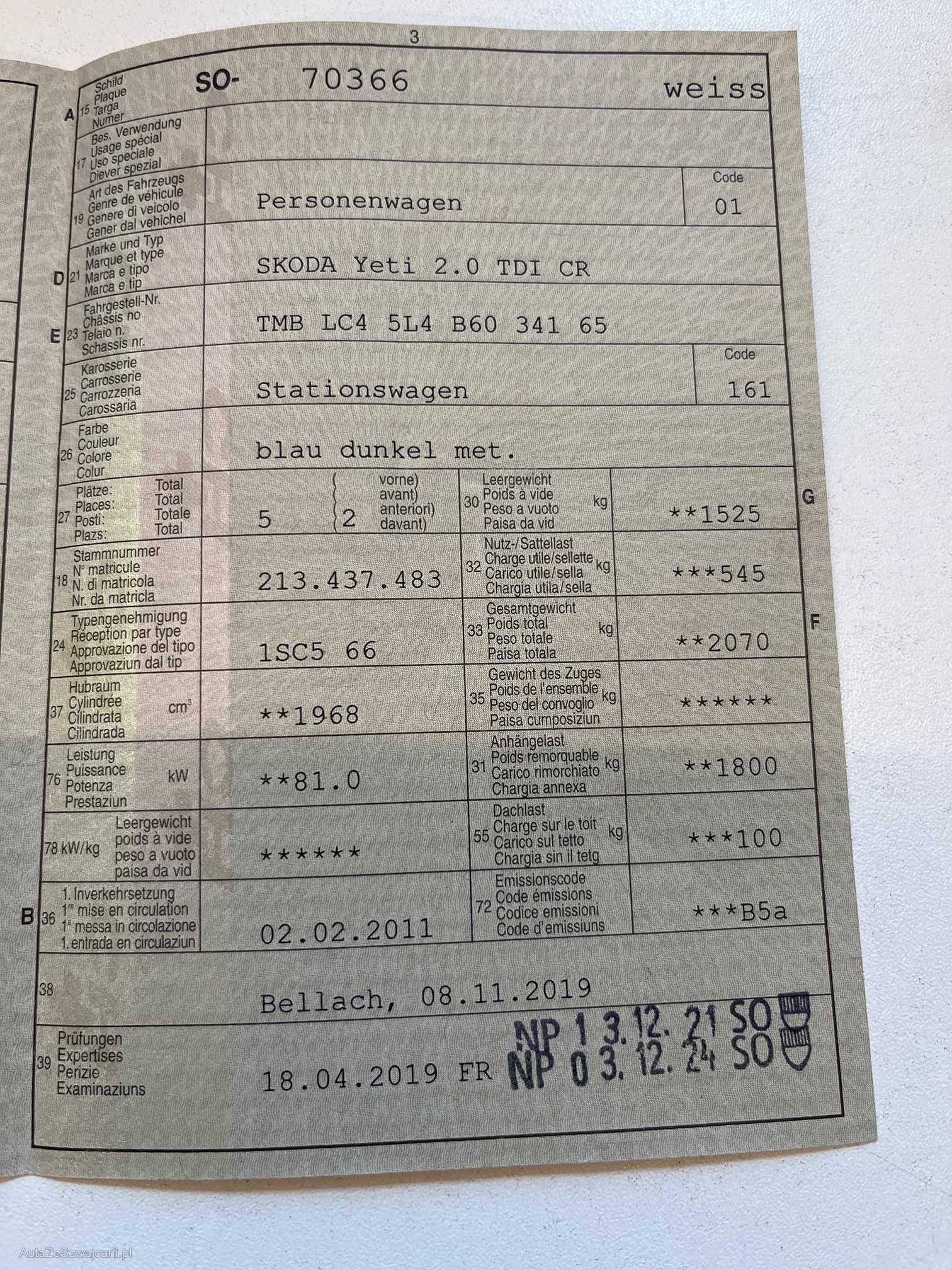 VIN | TMB LC4 5L4 B60 341 65 |