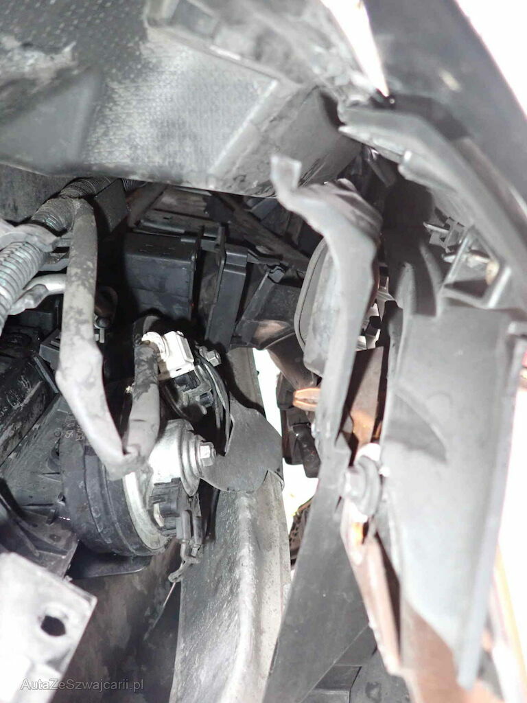 Anprall Front , dabei wurde der gesamte Frontbereich eingedrückt, Kühler und Frontmaske sind beschädigt